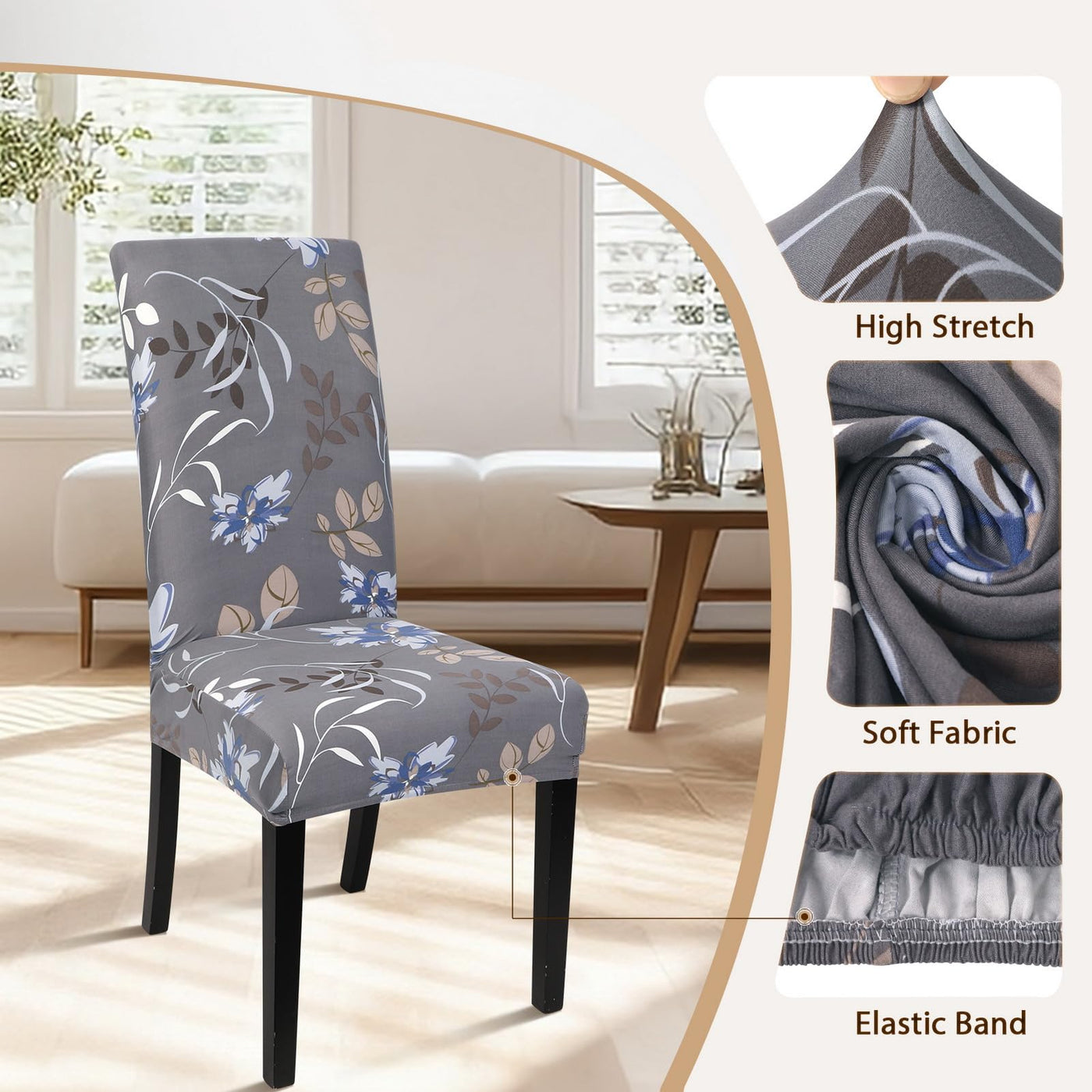 Searchi Dining Room Chair Covers Set Of 6, Stretch Printed Kitchen Chair Slipcovers Removable Washable Parsons Chair Covers Protector For Dining Room, Hotel, Ceremony (Flower Pattern4)