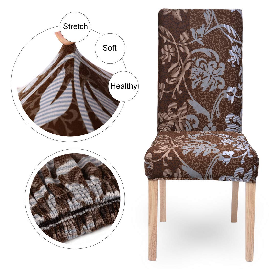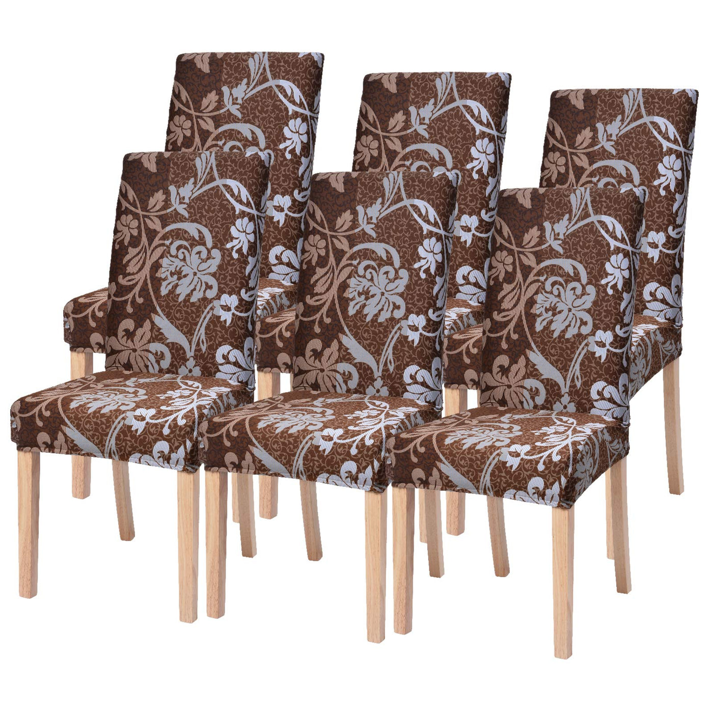 Searchi Dining Room Chair Covers Set Of 6, Stretch Printed Parsons Chair Slipcovers Removable Washable Kitchen Chair Protector Cover For Dining Room, Hotel, Ceremony (Brown+Flower)