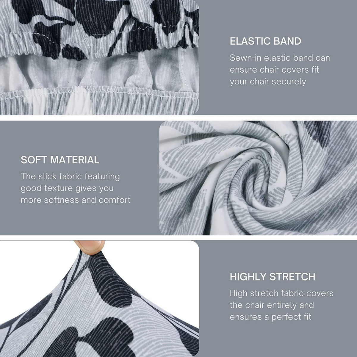 Searchi Printed Bar Stool Covers Set Of 2, Stretch Removable Washable Bar Stool Chair Covers, Counter Height Chairs Covers For Kitchen Dining Room Cafe Furniture (Grey Leaf)