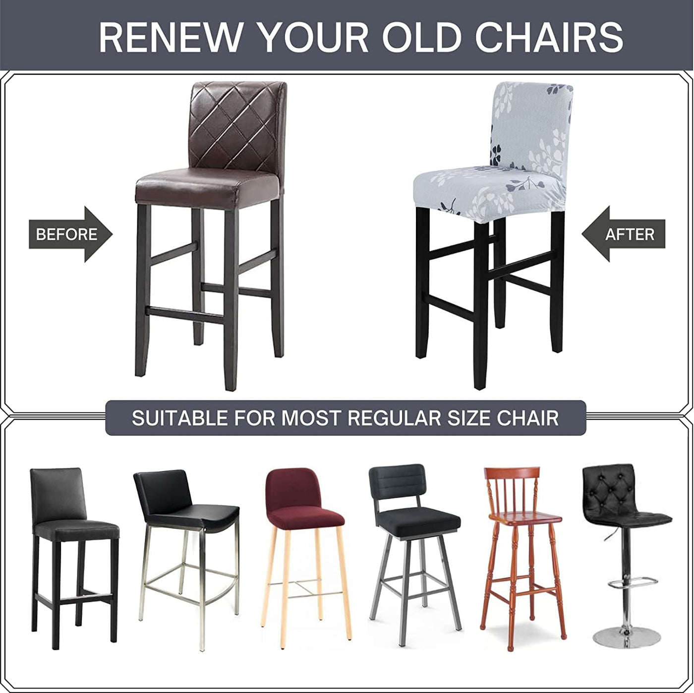 Multiplepattern and color: There are several kinds of vogue design varieties for you tochoose. Processed with reactive dyeing process, our counter height bar Stool have qualified color fastnessto keep the cover from fading.