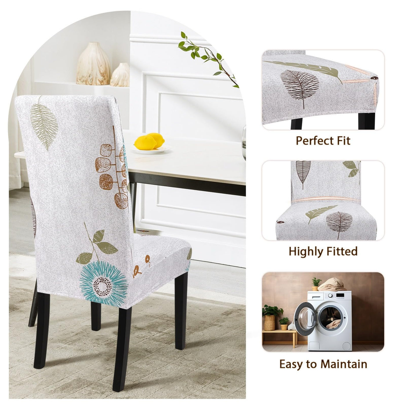 Searchi Printed Dining Room Chair Covers Set Of 4, Stretch Kitchen Chair Covers Washable Parsons Chair Slipcover Removable Dining Chair Protectors For Hotel,Ceremony(Autumn Leaves)