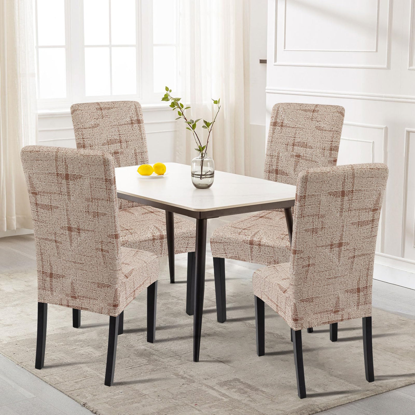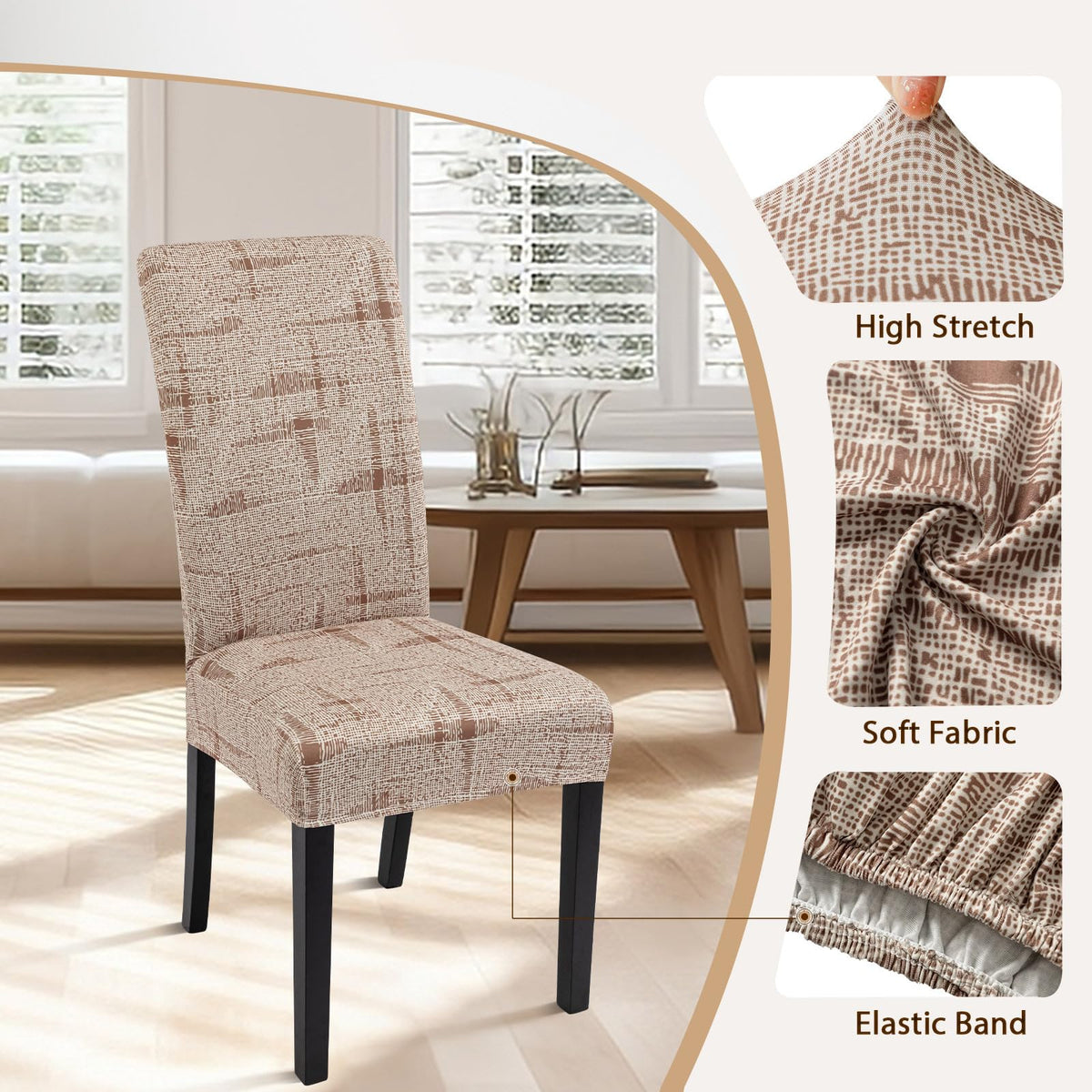 Searchi Printed Dining Room Chair Covers Set Of 6, Stretch Kitchen Chair Covers Washable Parsons Chair Slipcover Removable Dining Chair Protectors For Hotel,Ceremony (Brown Wireframe Texture)