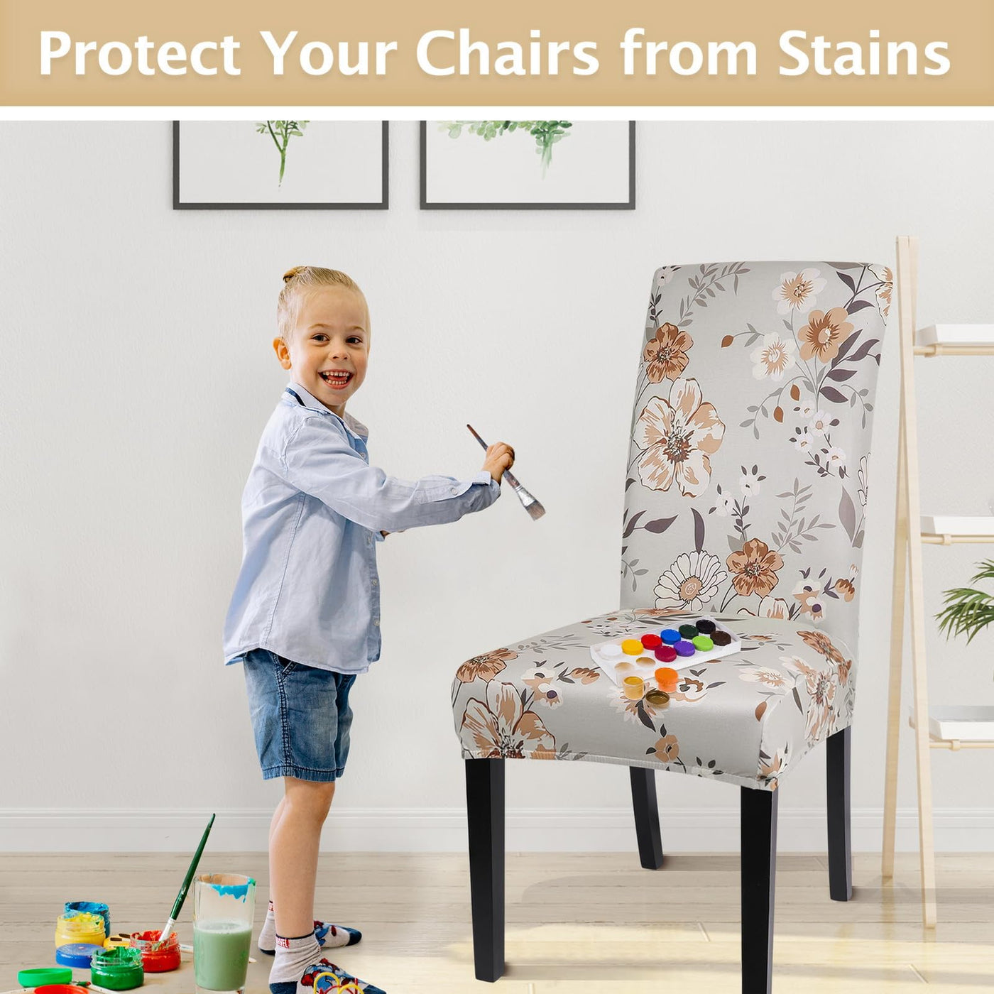 Searchi Printed Dining Room Chair Covers Set Of 6, Stretch Kitchen Chair Covers Washable Parsons Chair Slipcover Removable Dining Chair Protectors For Hotel,Ceremony(Brown Floral)