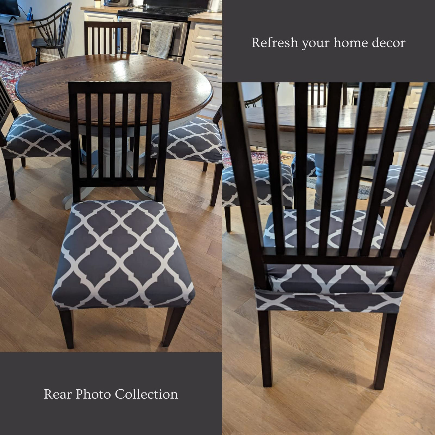 Searchi Stretch Dining Chair Seat Covers Set Of 4, Soft Removable Washable Seat Covers For Dining Chairs, Dining Room Protector (Rear-Covered, Grey)