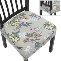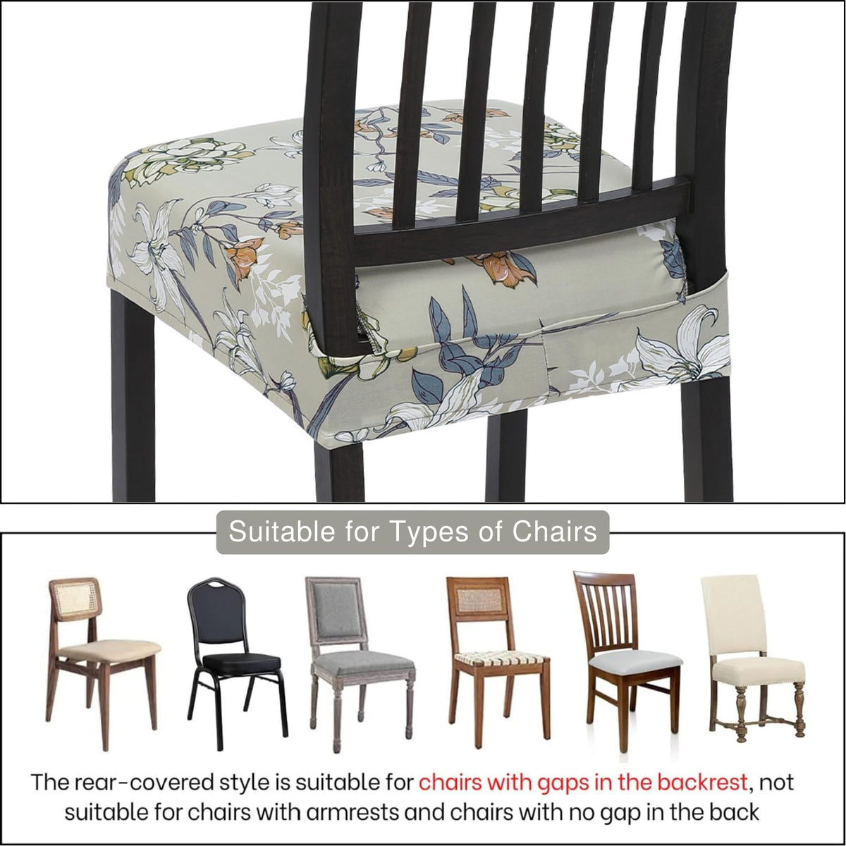 Searchi Stretch Dining Chair Seat Covers Set Of 4, Soft Removable Washable Seat Covers For Dining Chairs, Dining Room Seat Cover Protector (Rear-Covered, Green Grey Flower)