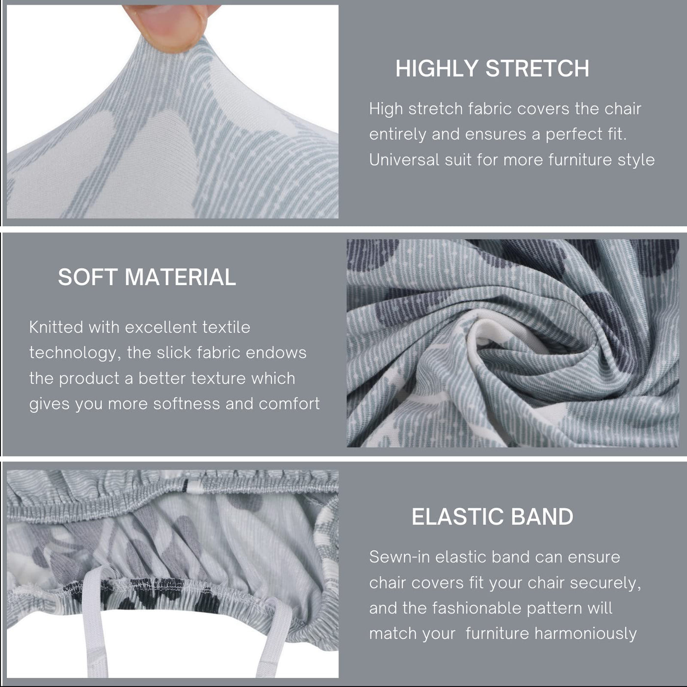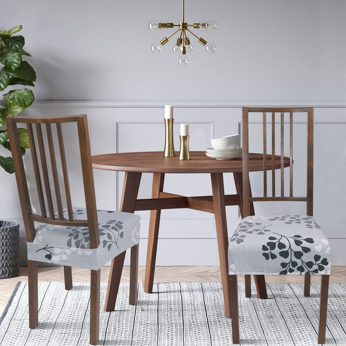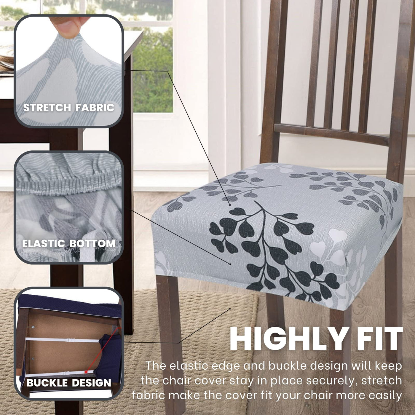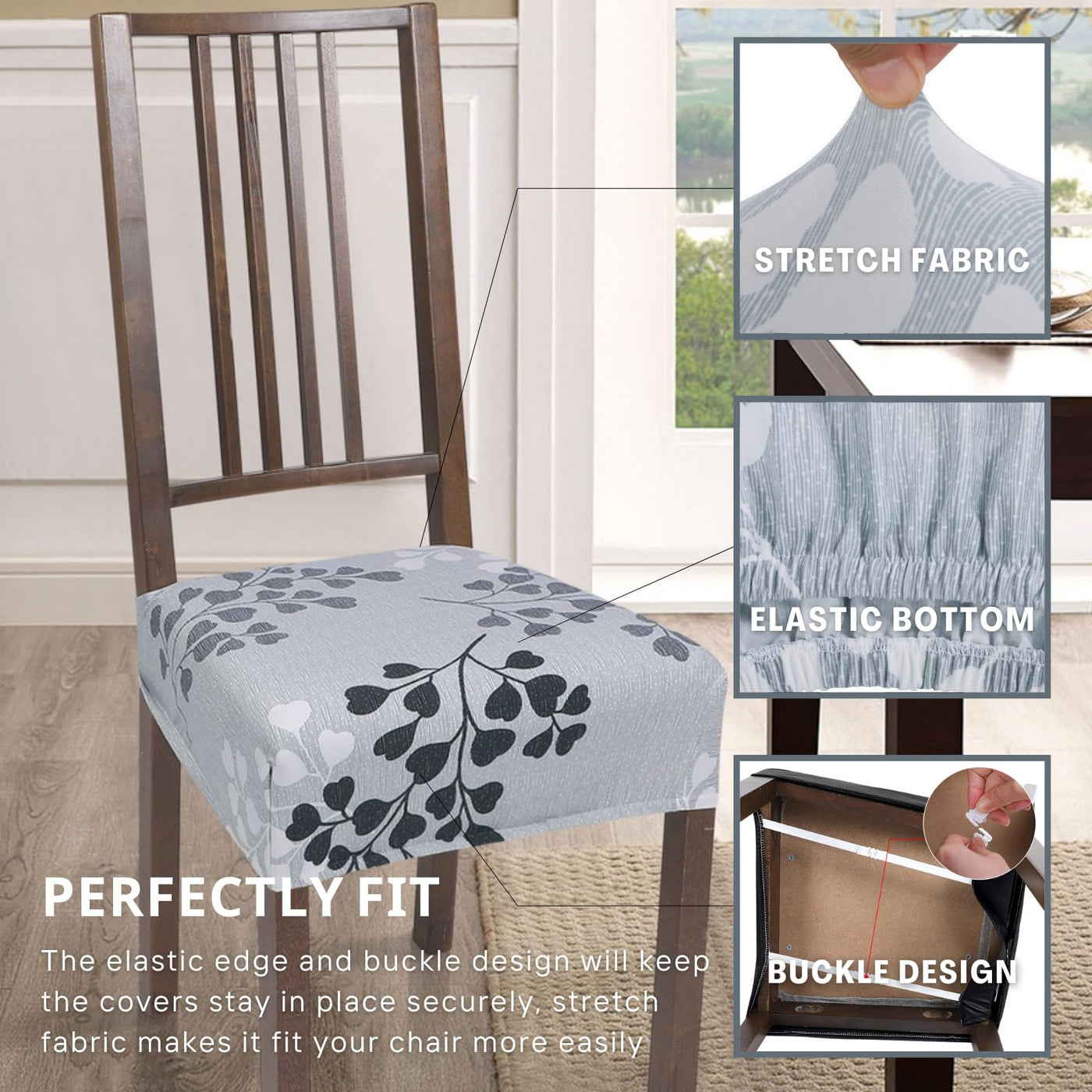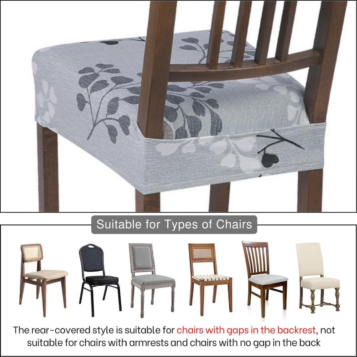 Searchi Stretch Dining Chair Seat Covers Set Of 4, Soft Removable Washable Seat Covers For Dining Chairs, Dining Room Seat Cover Protector (Rear-Covered, Grey Flowers)