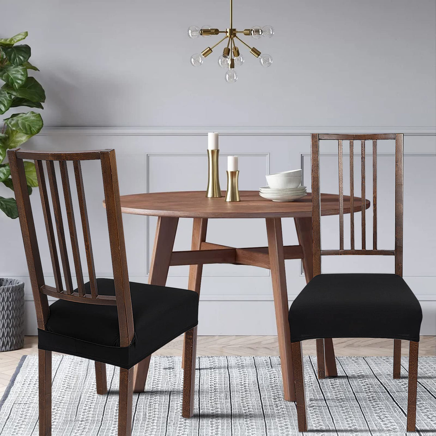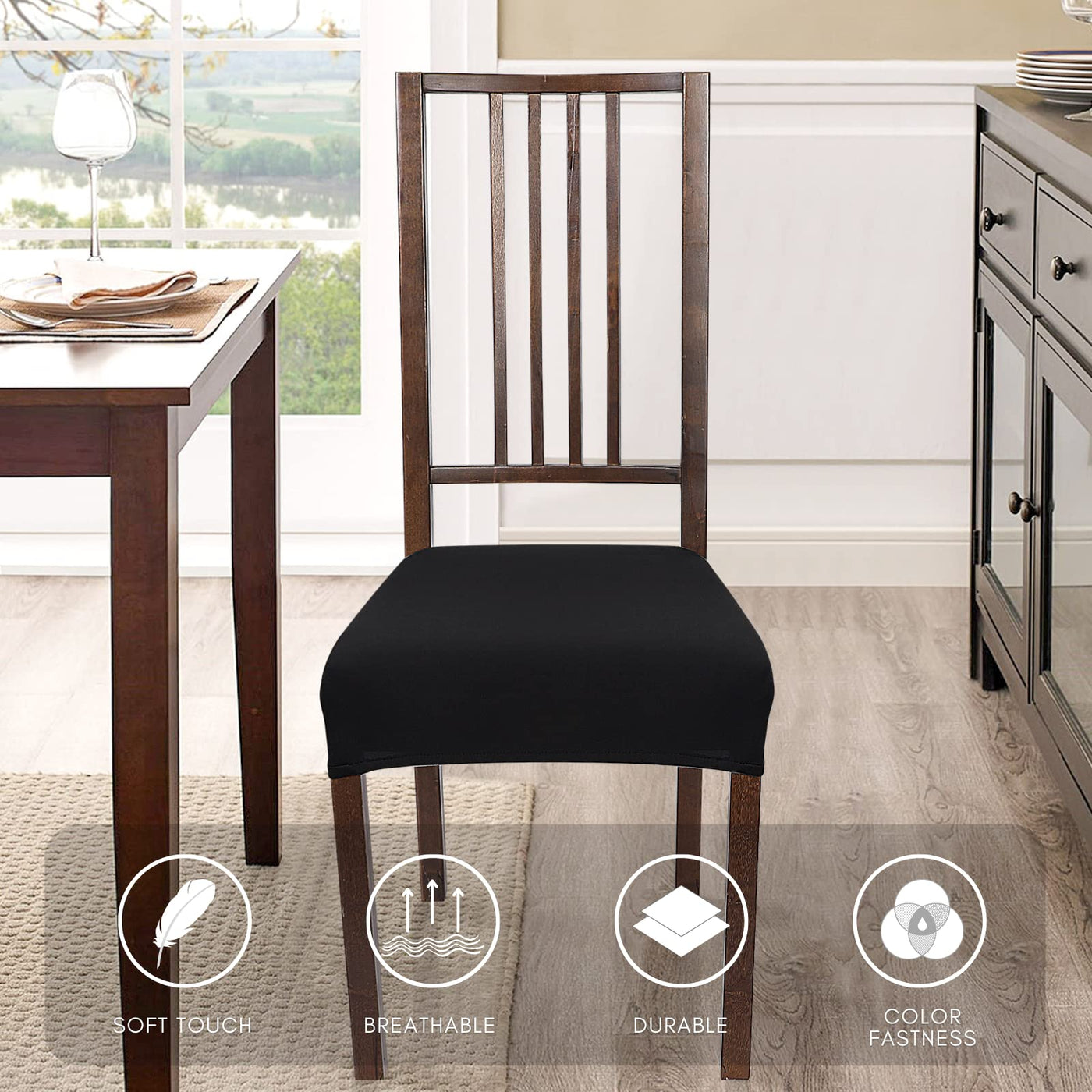 Searchi Stretch Dining Chair Seat Covers Set Of 4, Soft Removable Washable Seat Covers For Dining Chairs, Dining Room Seat Cover Protector (Rear-Covered, Pure Black)