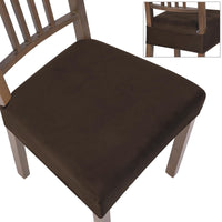 Searchi Stretch Dining Chair Seat Covers Set Of 4, Soft Removable Washable Seat Covers For Dining Chairs, Dining Room Seat Cover Protector (Rear-Covered, Velvet Brown)