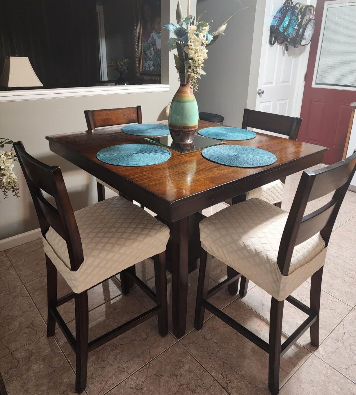 Searchi Stretch Dining Chair Seat Covers Set Of 4, Soft Removable Washable Seat Covers For Dining Chairs, Dining Room Seat Cover Slipcover Protector (Rear-Covered, Beige Diamond Jacquard)