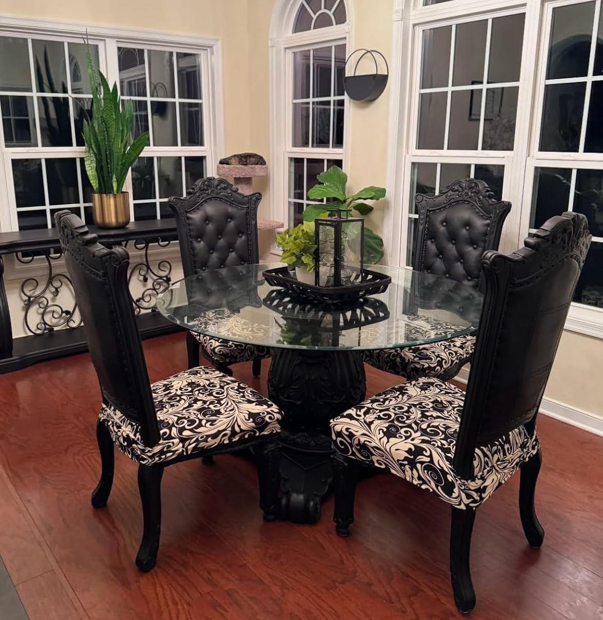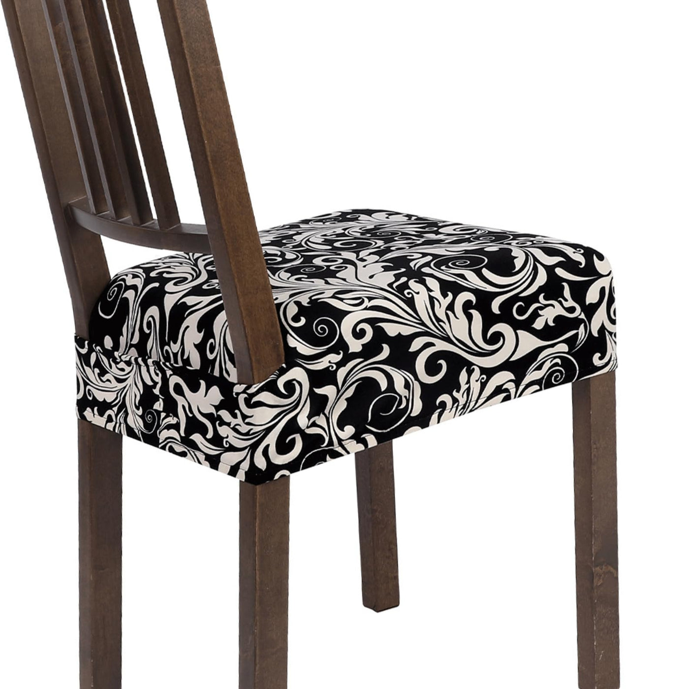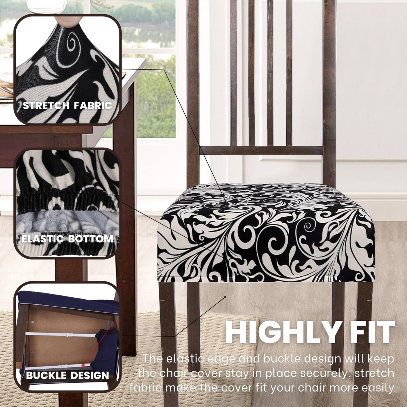 Searchi Stretch Dining Chair Seat Covers Set Of 4, Soft Removable Washable Seat Covers For Dining Chairs, Dining Room Seat Cover Slipcover Protector (Rear-Covered, Black Flower)