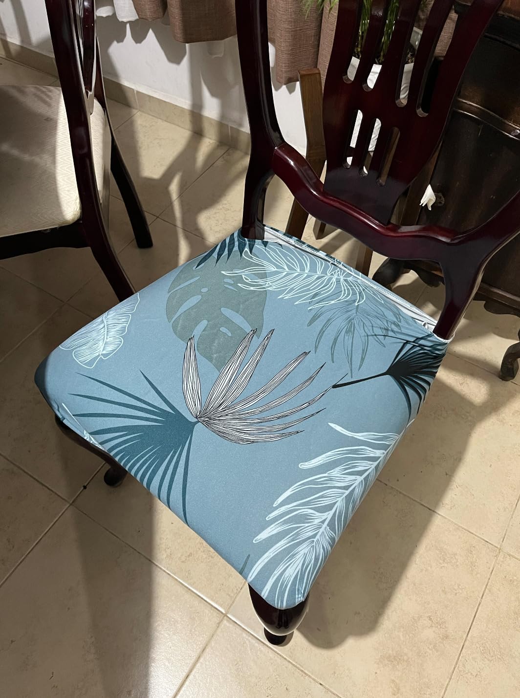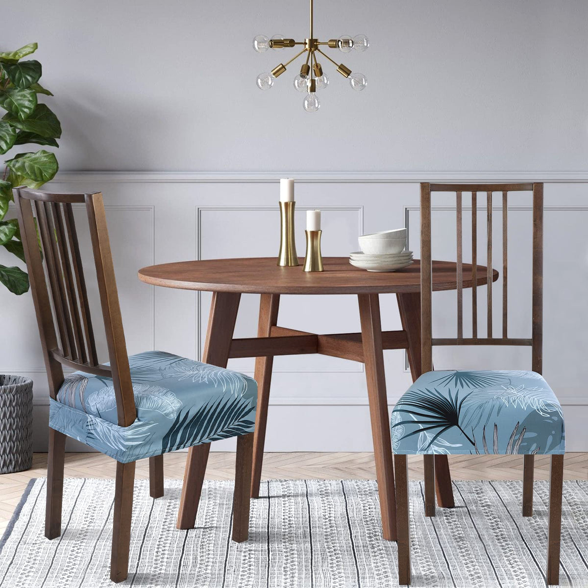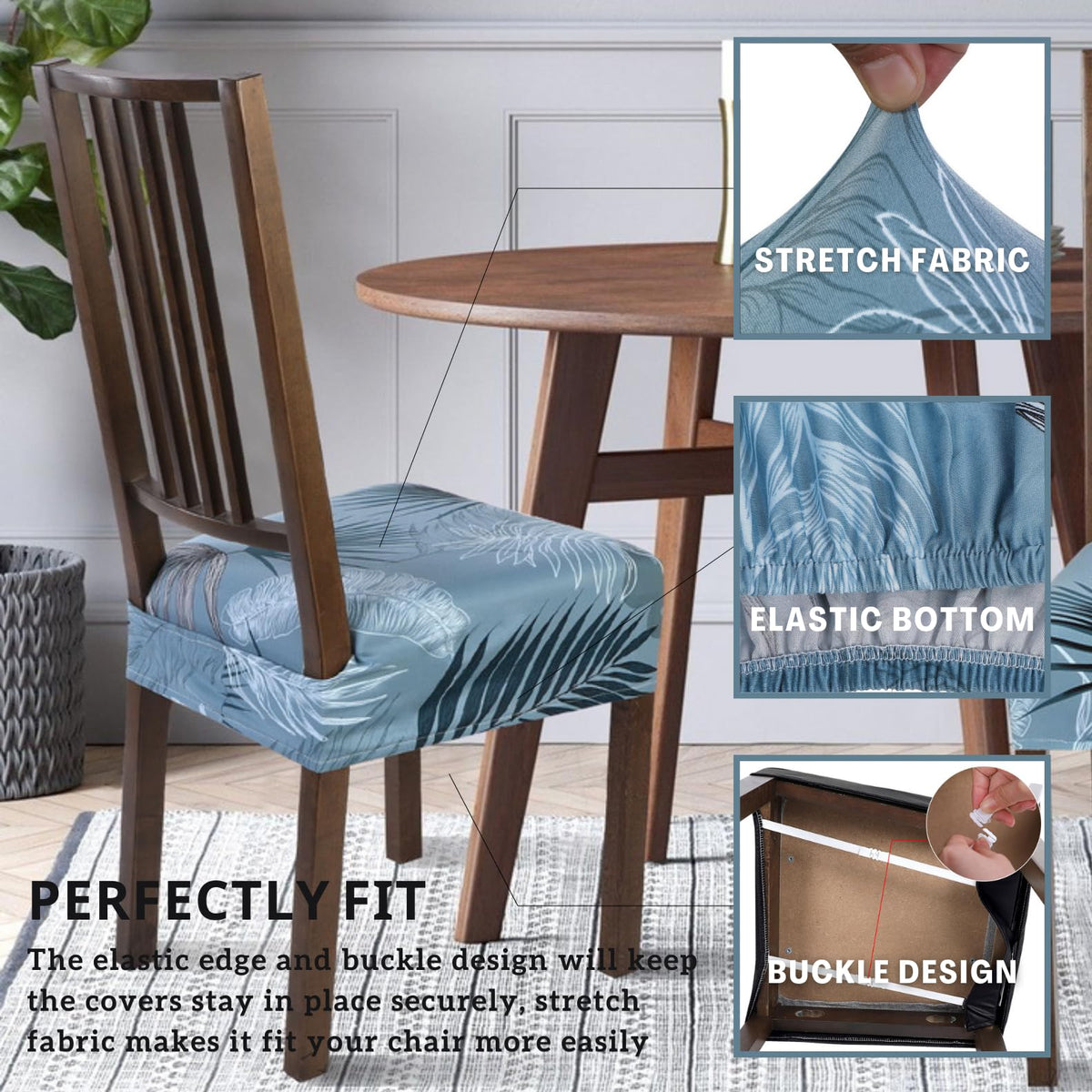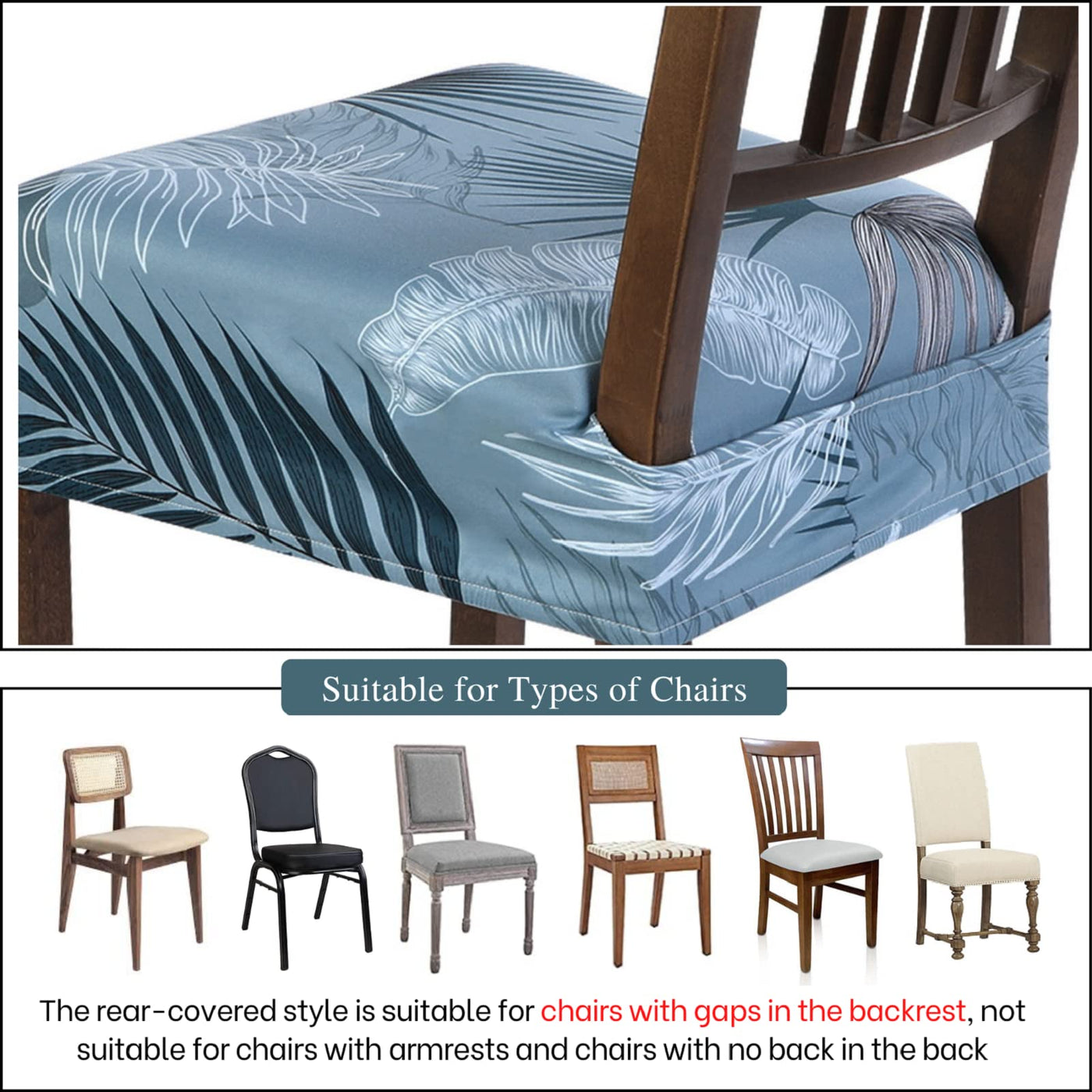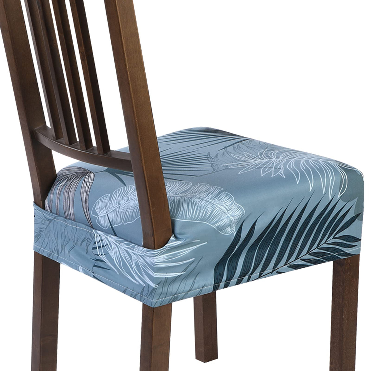 Searchi Stretch Dining Chair Seat Covers Set Of 4, Soft Removable Washable Seat Covers For Dining Chairs, Dining Room Seat Cover Slipcover Protector (Rear-Covered, Blue Foliage)