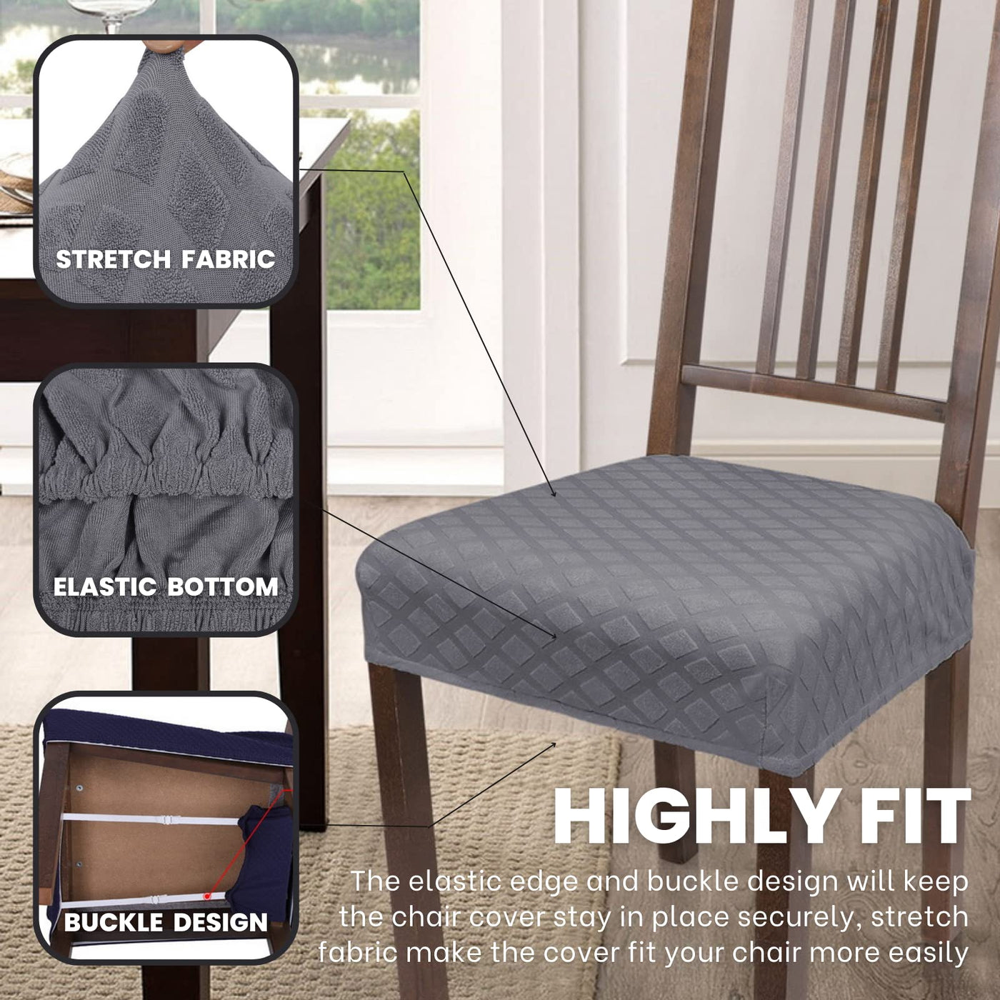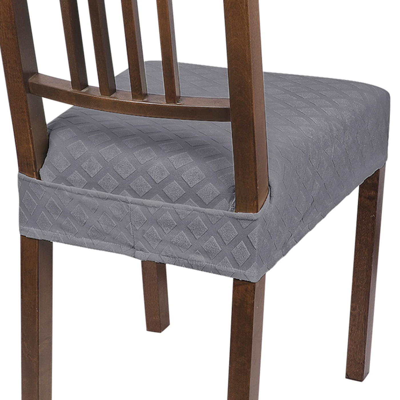 Searchi Stretch Dining Chair Seat Covers Set Of 4, Soft Removable Washable Seat Covers For Dining Chairs, Dining Room Seat Cover Slipcover Protector (Rear-Covered, Grey Diamond Jacquards)