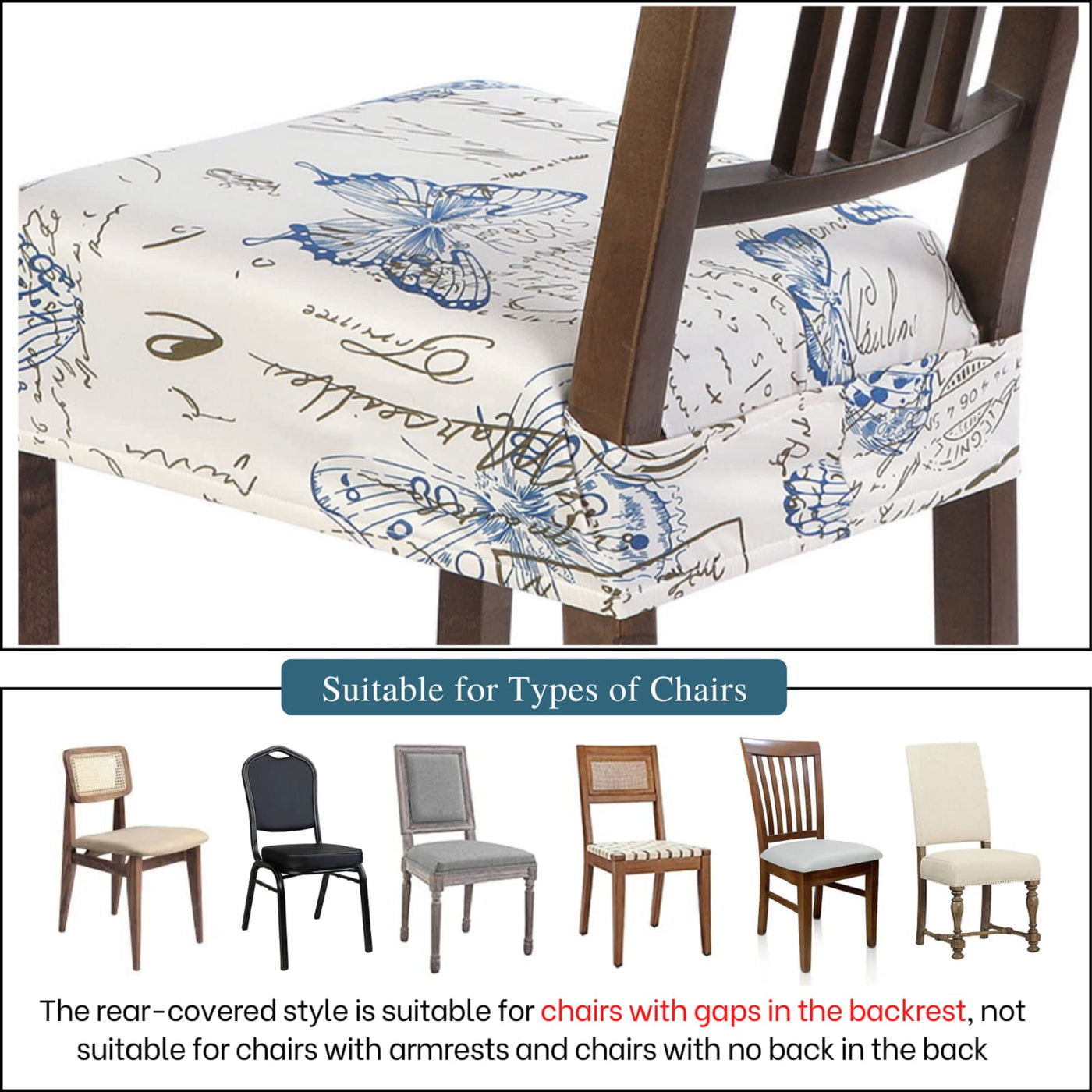 Searchi Stretch Dining Chair Seat Covers Set Of 6, Soft Removable Washable Seat Covers For Dining Chairs, Dining Room Seat Cover Protector (Rear-Covered, Butterfly)