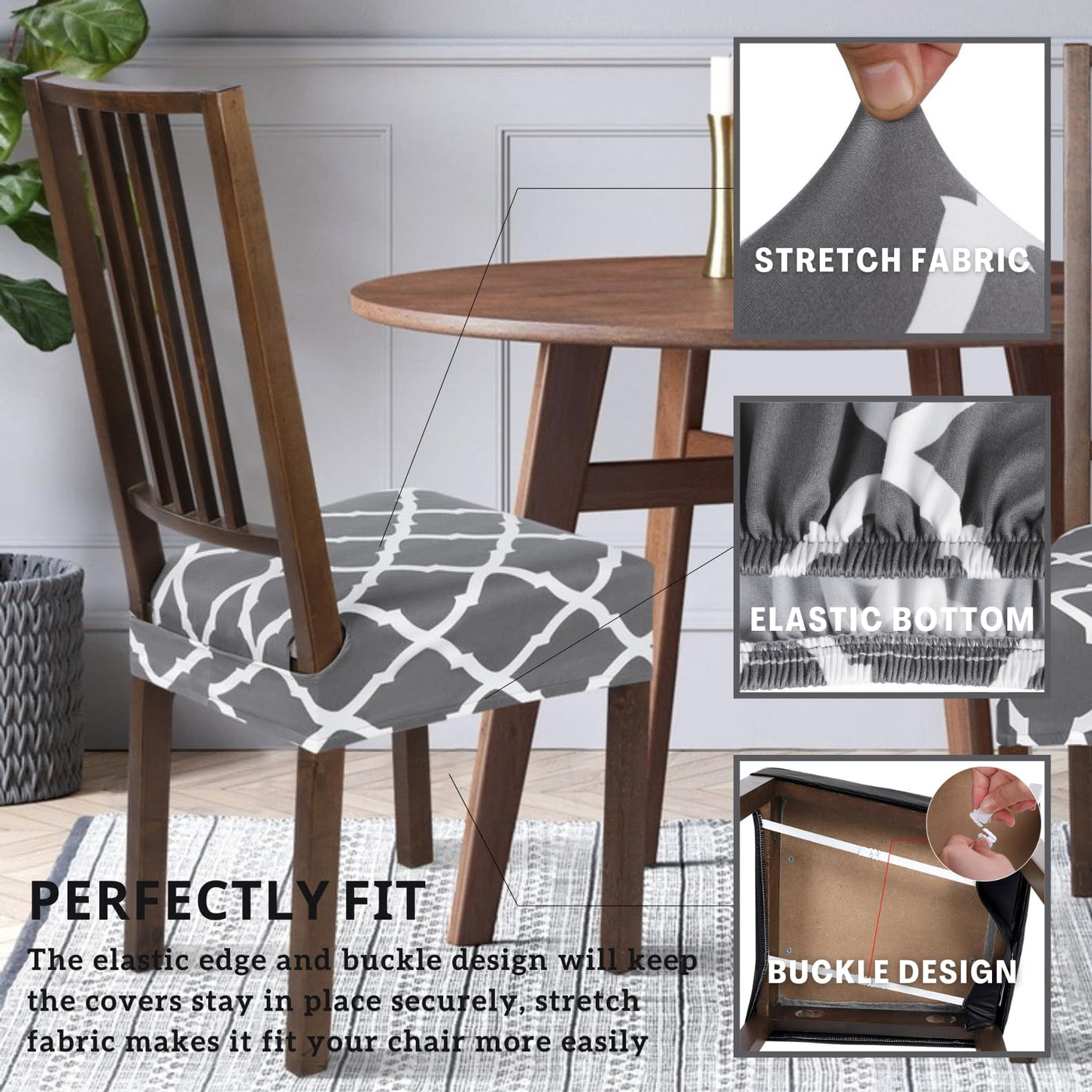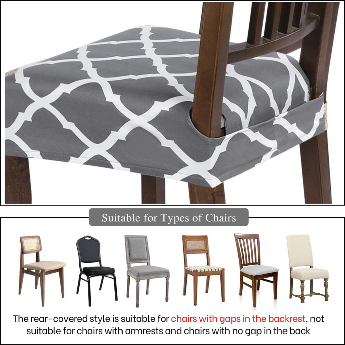 Searchi Stretch Dining Chair Seat Covers Set Of 6, Soft Removable Washable Seat Covers For Dining Chairs, Dining Room Seat Cover Protector (Rear-Covered, Grey)