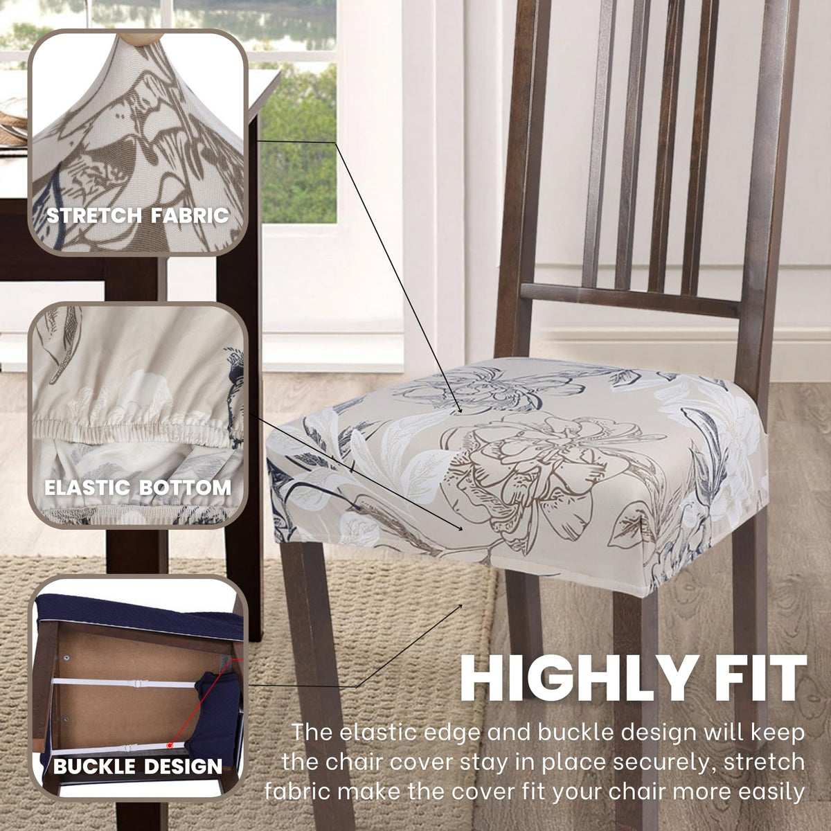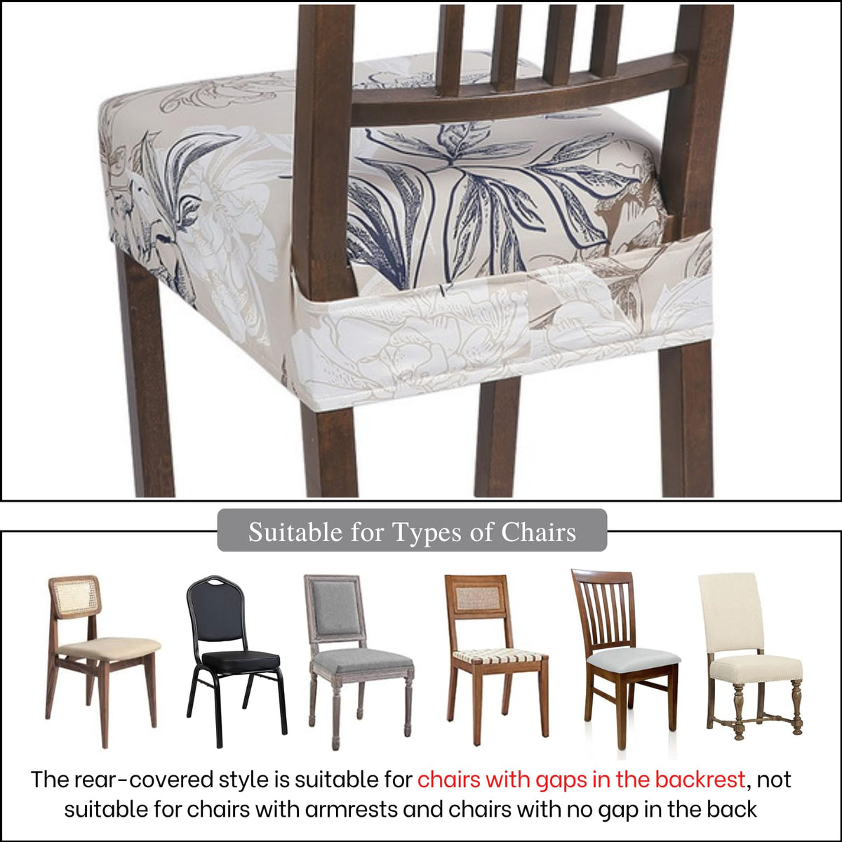 Searchi Stretch Dining Chair Seat Covers Set Of 6, Soft Removable Washable Seat Covers For Dining Chairs, Dining Room Seat Cover Slipcover Protector (Rear-Covered, Beige And Blue Flower)