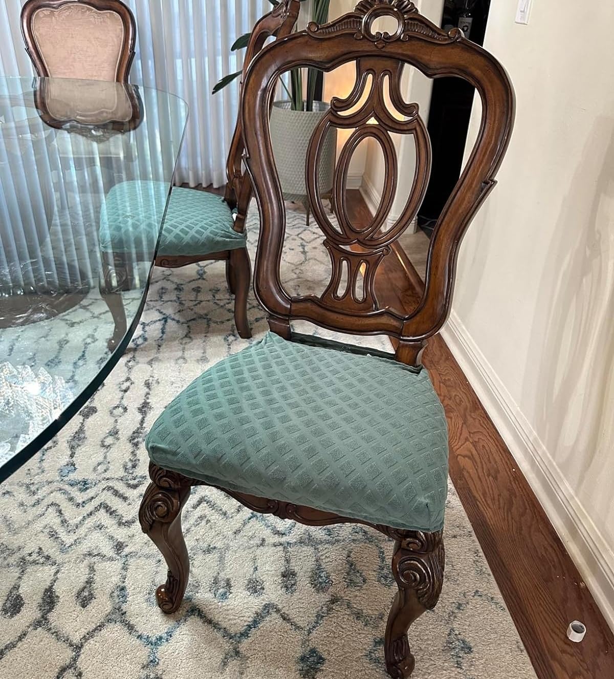 Searchi Stretch Dining Chair Seat Covers Set Of 6, Soft Removable Washable Seat Covers For Dining Chairs, Dining Room Seat Cover Slipcover Protector (Rear-Covered, Diamond Aegean Teal)