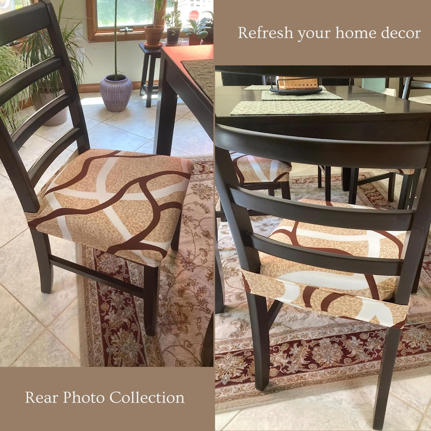 Searchi Stretch Dining Chair Seat Covers Set Of 8, Soft Removable Washable Seat Covers For Dining Chairs, Dining Room Seat Cover Slipcover Protector (Rear-Covered, Beige)