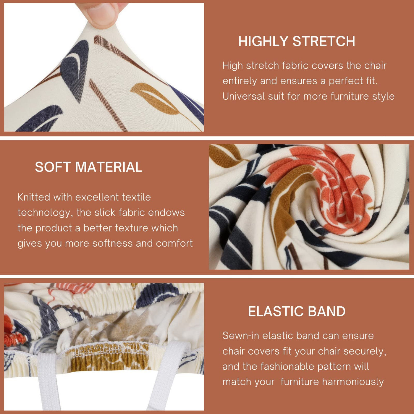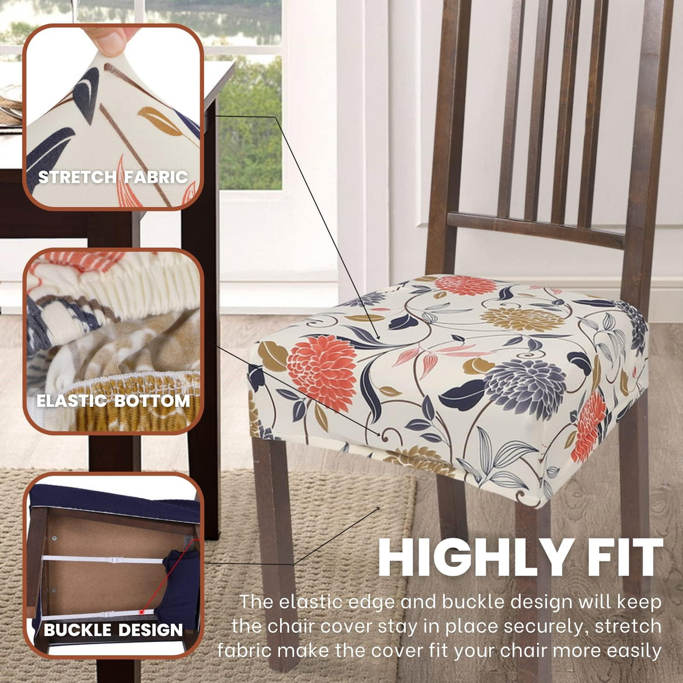 Searchi Stretch Dining Chair Seat Covers Set Of 8, Soft Removable Washable Seat Covers For Dining Chairs, Dining Room Seat Cover Slipcover Protector (Rear-Covered, Orange Flower)