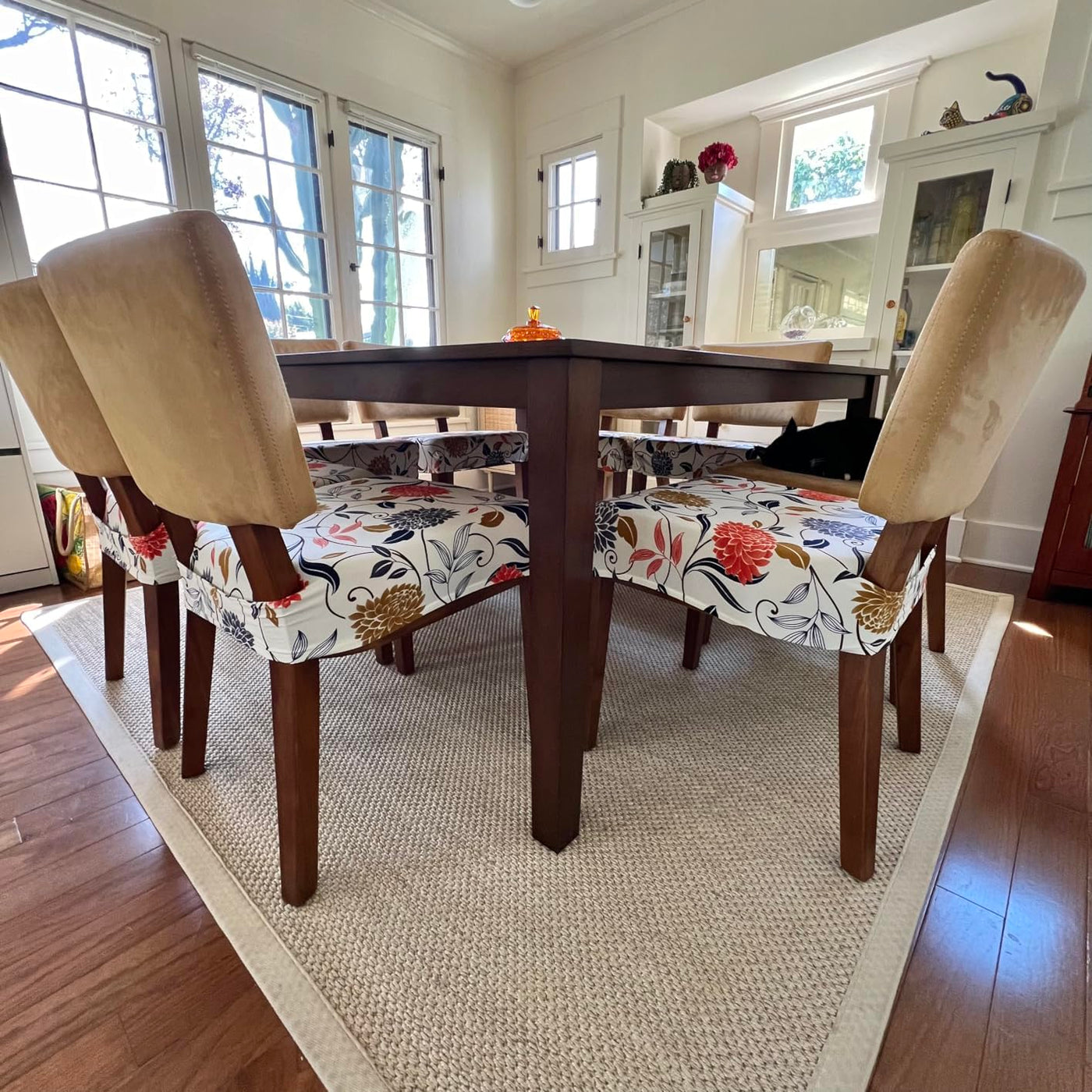 Q: Can these seat covers be washed easily?A: Yes, the SearchI dining chair seat covers are washable. You can wash them in cold water on a gentle cycle and then tumble dry on low. Avoid ironing and bleaching to keep the covers in good condition.