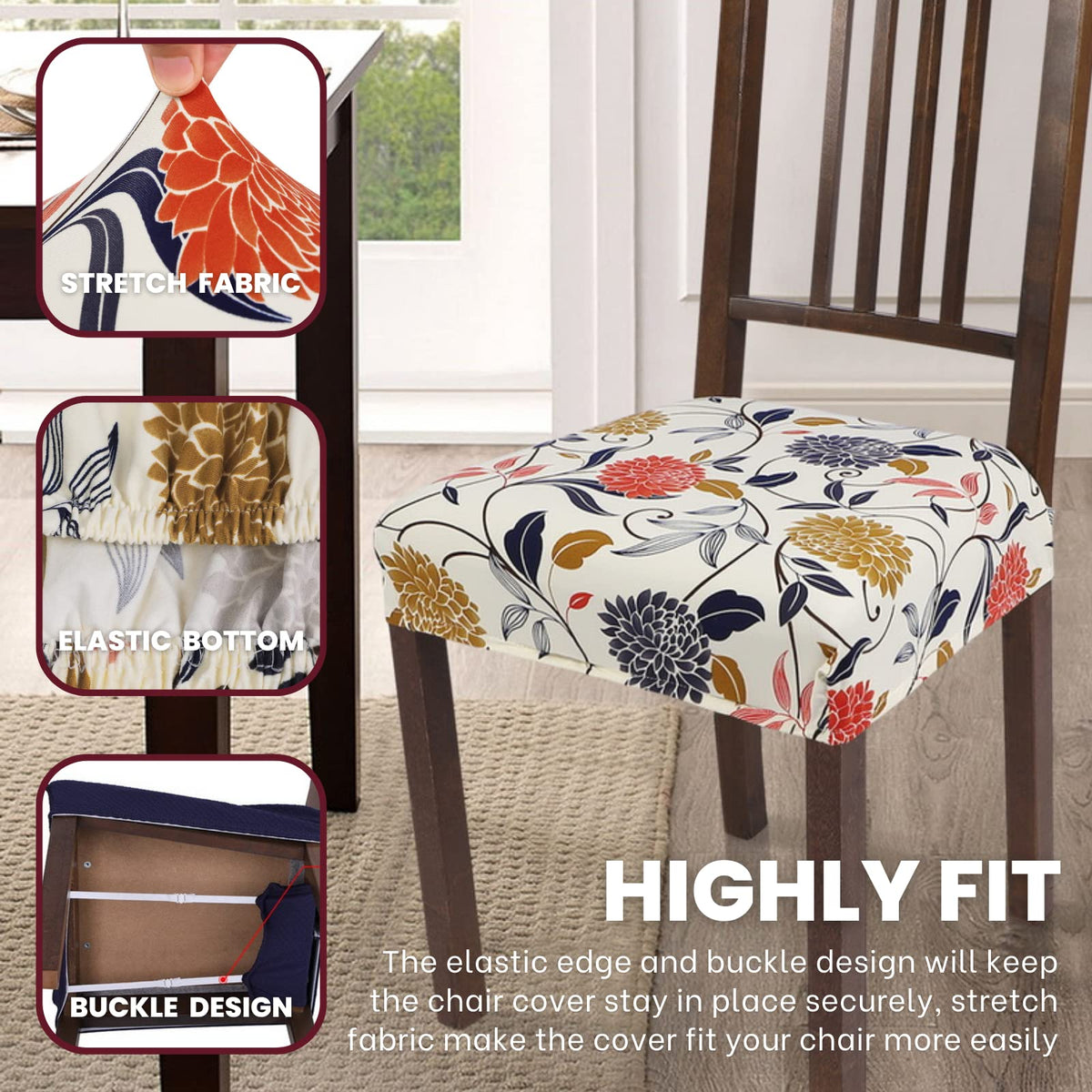 1.Searchi Chair Seat Cover Rejuvenate Your Old Chair And Protect Your Chair From Stain And Cat Scratch. Its Unique Jacquard Design Of Geometric Pattern Decorate Your Home Environment And Create A Cozy Atmosphere .Our Chair Cushion Cover Is An Ideal Choice For Families With Children And Dogs And Cats 2. Chair Seat Length:14.9''-19.6''; Chair Width:14.9''-19.6''; Chair Thickness:2.7''- 3.9'' 3. Searchi Seat Cushion Slipcovers Is Stretchy That It Can Fit Your Chairs Very Snugly. 4. Both Hand Washing And Machine Washing Are Ok, Youd Better Tumble Dry Low And Iron The Kitchen Chair Cover On Low Heat. Do Not Bleach.