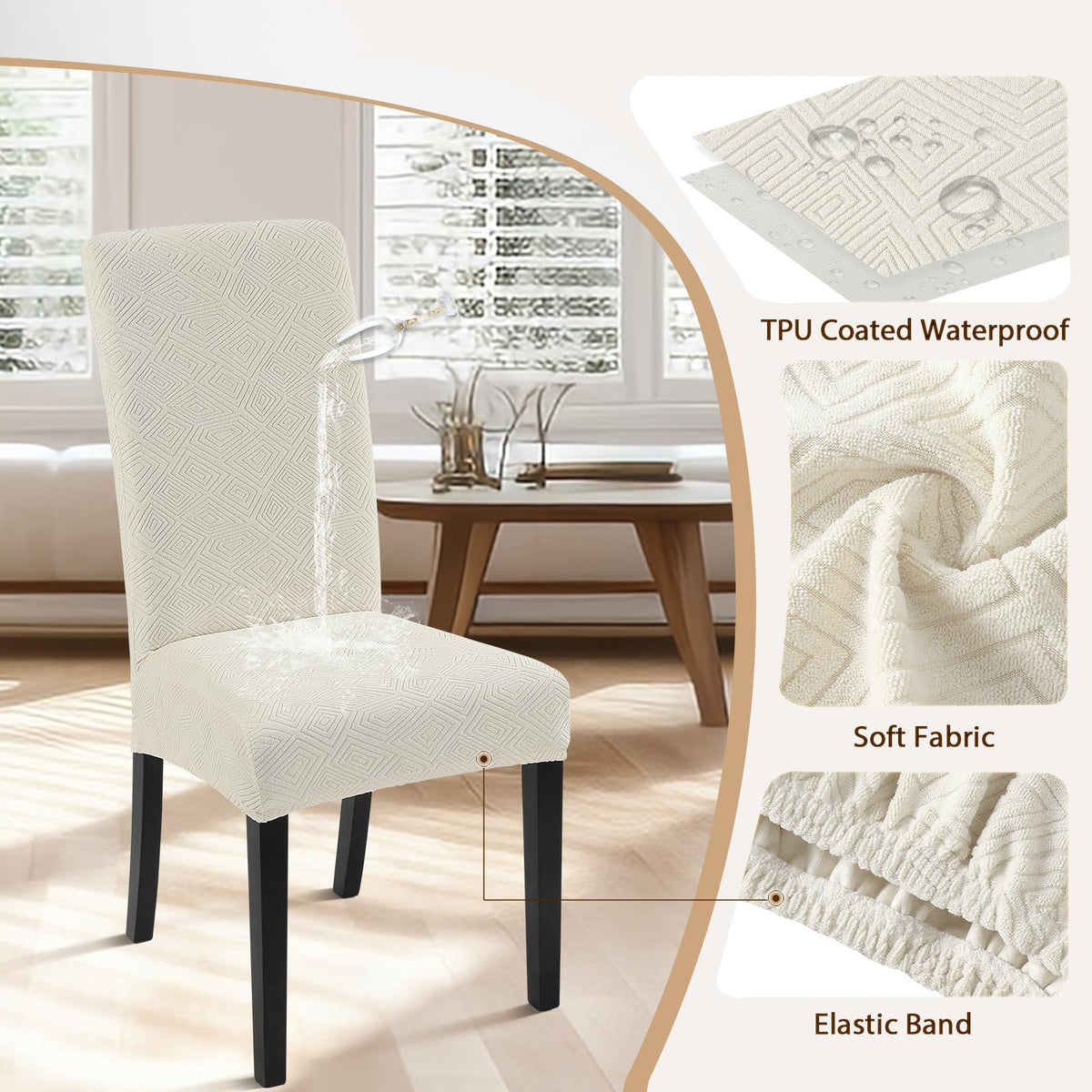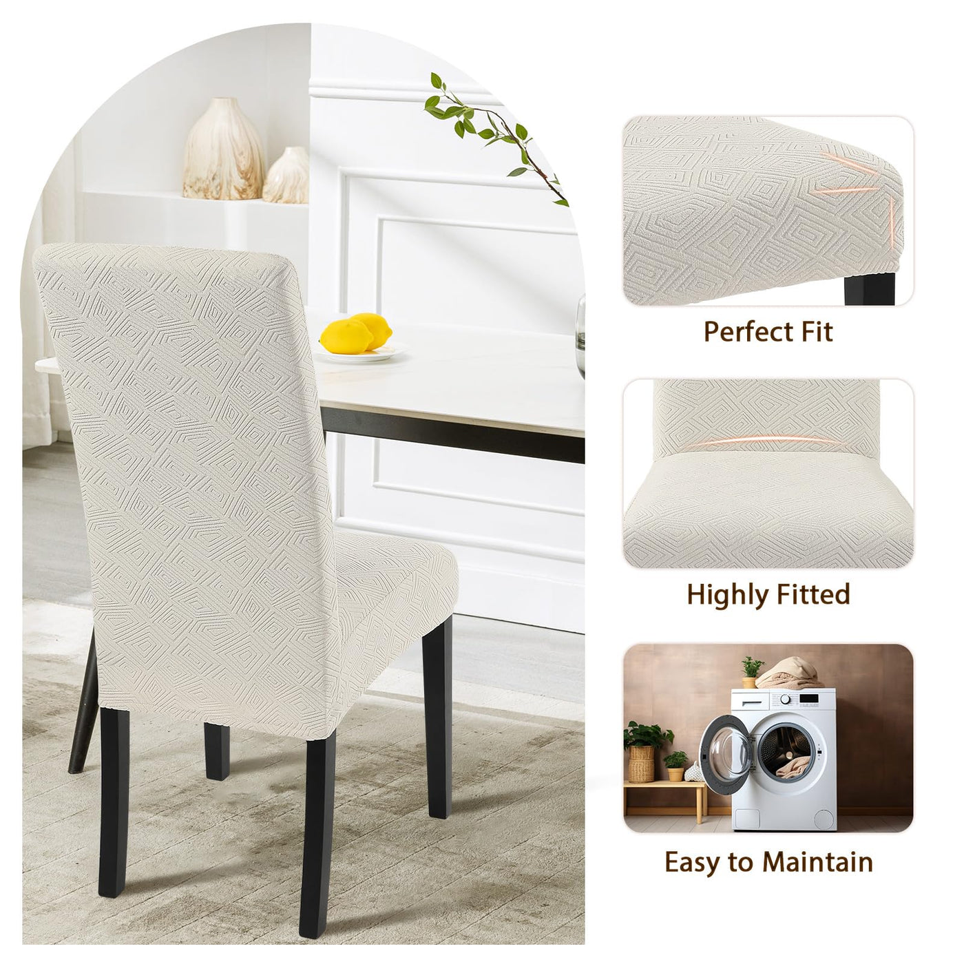 Searchi Waterproof Dining Room Chair Covers Set Of 6, Stretch Jacquard Parsons Chair Slipcovers Removable Washable Kitchen Chair
