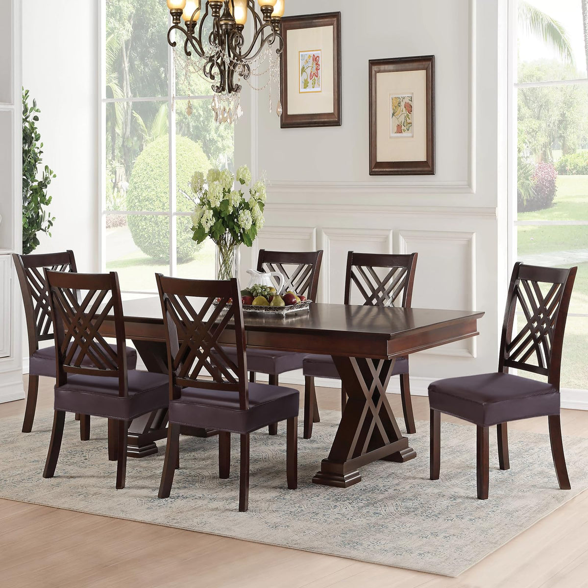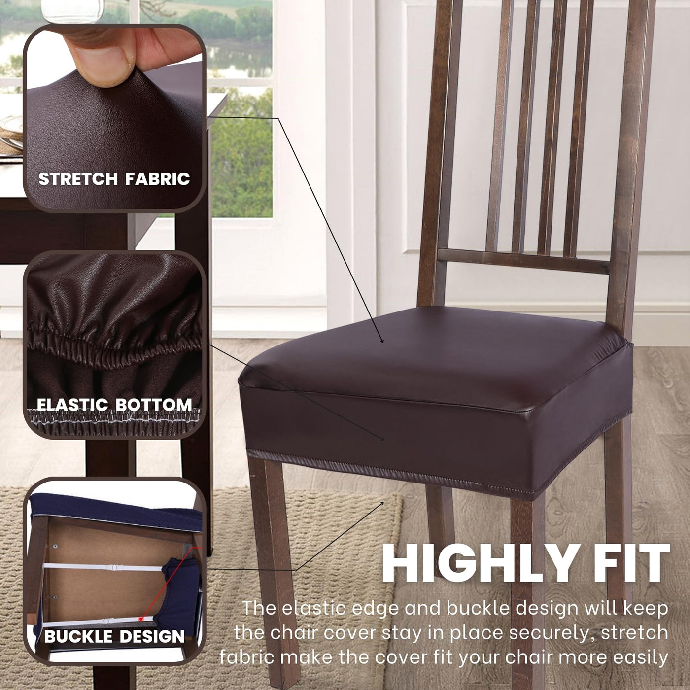 Searchi Waterproof Pu Dining Chair Seat Covers Set Of 6, Soft Removable Washable Seat Covers For Dining Chairs, Dining Room Seat Cover Slipcover Protector (Rear-Covered, Pu Brown)