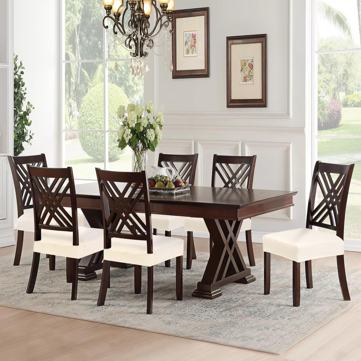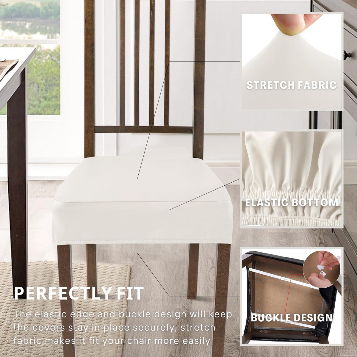 Searchi Waterproof Pu Seat Covers For Dining Chairs Set Of 4, Washable Stretch Dining Chair Seat Covers, Dining Room Chair Cover