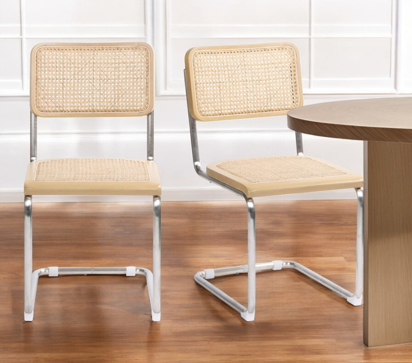 Set of Two Natural and Silver Steel Open Back Dining Side Chairs