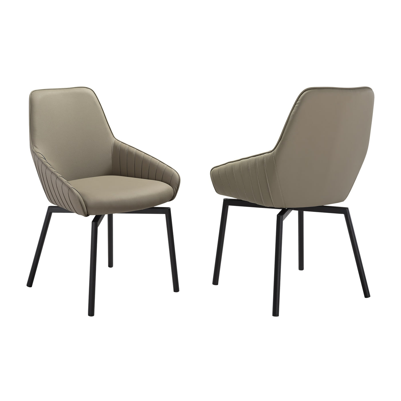 Shilo Swivel Upholstered Dining Chair in Taupe Gray Faux Leather with Black Metal Legs - Set of 2