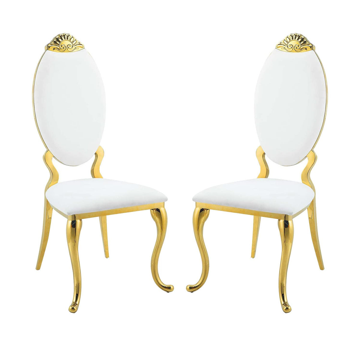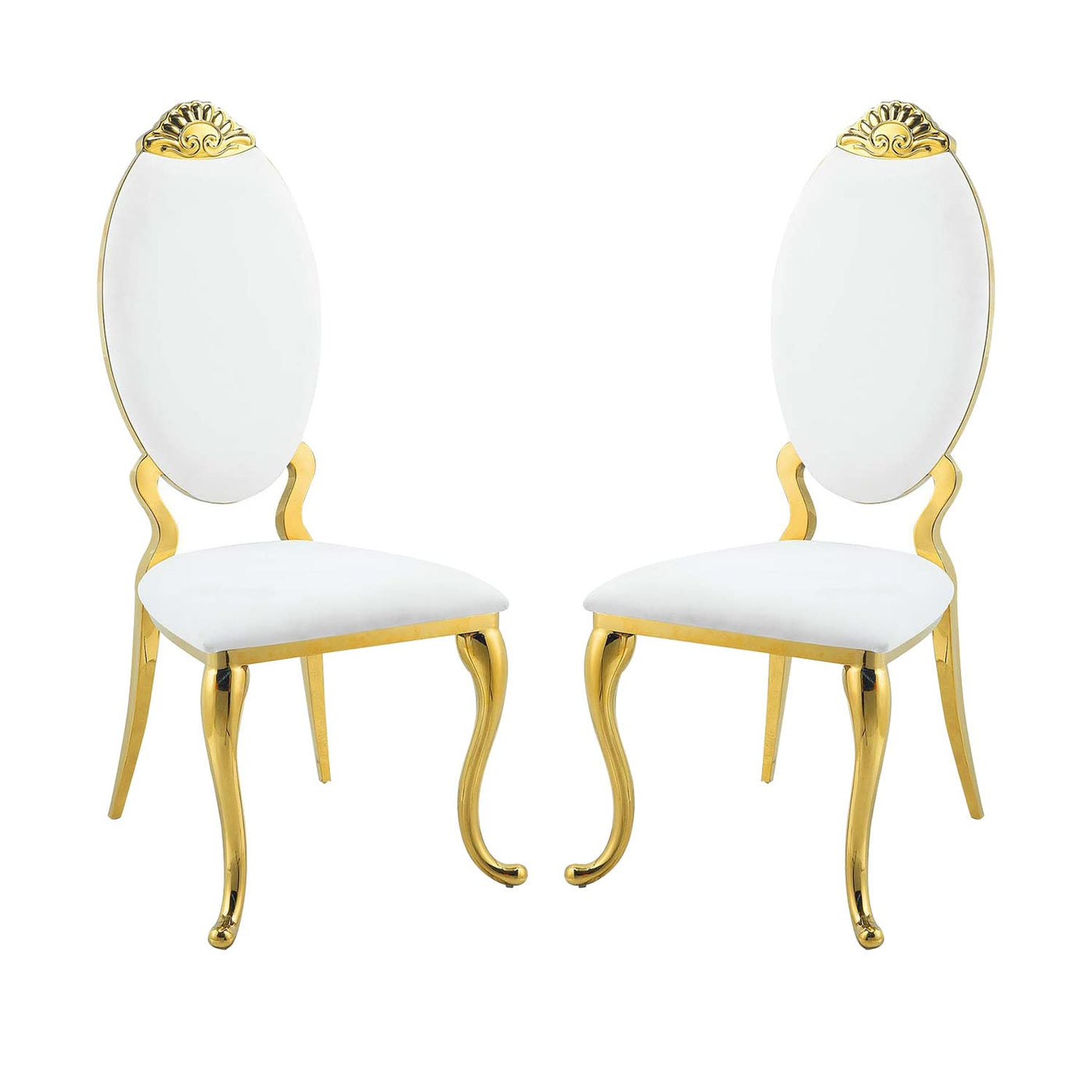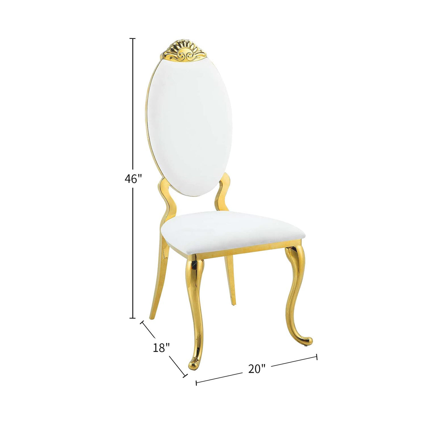 With modern and classic design elements perfectly merged into one to create the side chair. The white PU is classic and will always stay in fashion, paired with the fresh gleaming golden base to create a chic piece.