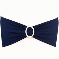Sinssowl Pack Of 50Pcs Elastic Slider Chair Sashes Spandex Chair Cover Band Bows For Wedding Decoration-Navy Blue