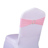 Sinssowl Pack Of 50Pcs Elastic Slider Chair Sashes Spandex Chair Cover Band Bows For Wedding Decoration-Pink