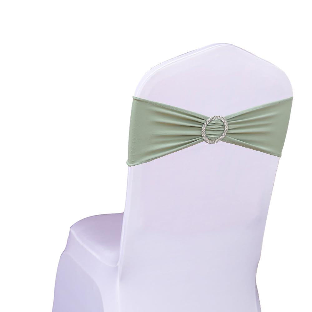 Sinssowl Pack Of 50Pcs Spandex Sage Green Chair Sashes Bows Elastic Chair Cover Bands Slider Buckles For Wedding Reception Banquet Bridal Decorations - Sage Green