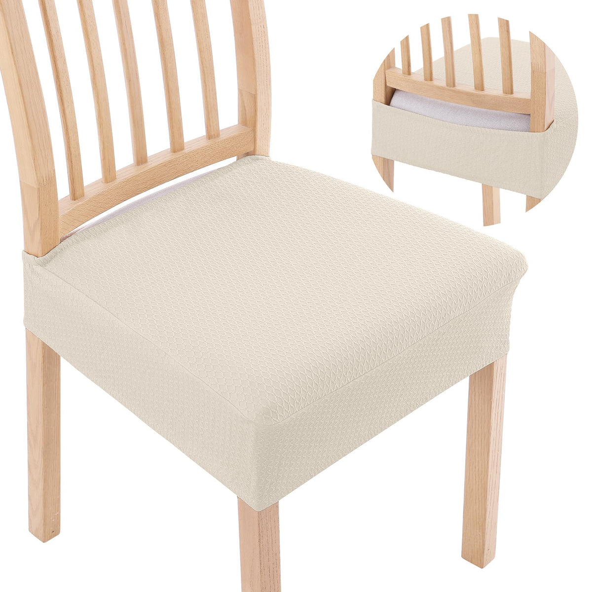 Smiry Stretch Jacquard Seat Covers For Dining Room Chairs Set Of 4, Removable Washable Chair Seat Protector Slipcovers, No Rear Covers, Beige