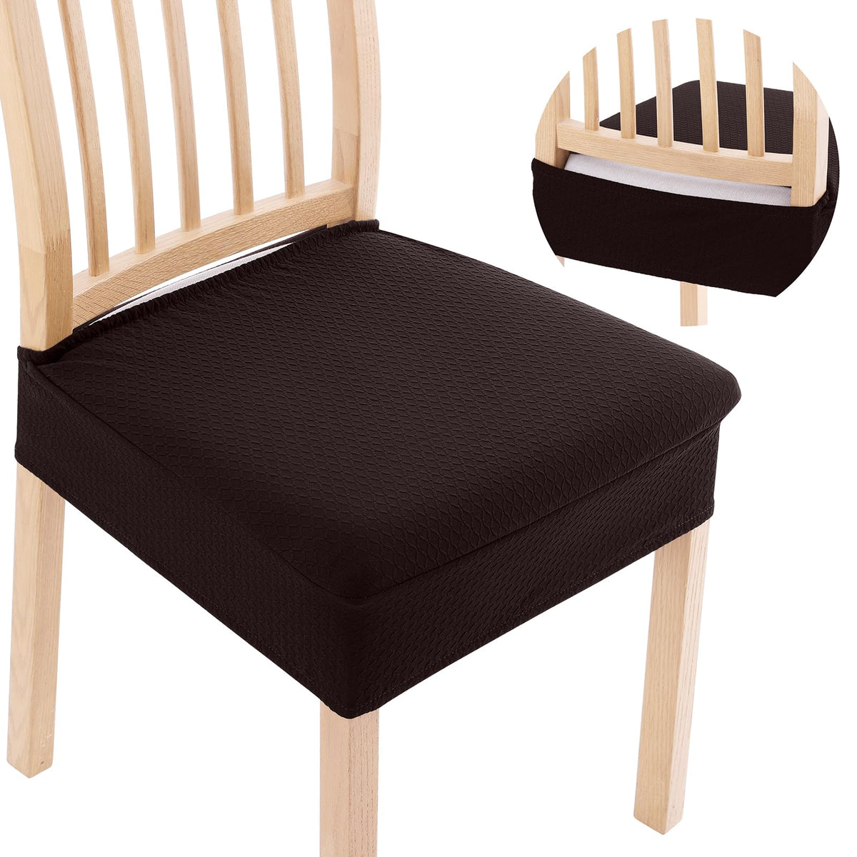 Smiry Stretch Jacquard Seat Covers For Dining Room Chairs Set Of 6, Removable Washable Chair Seat Protector Slipcovers, No Rear Covers, Brown