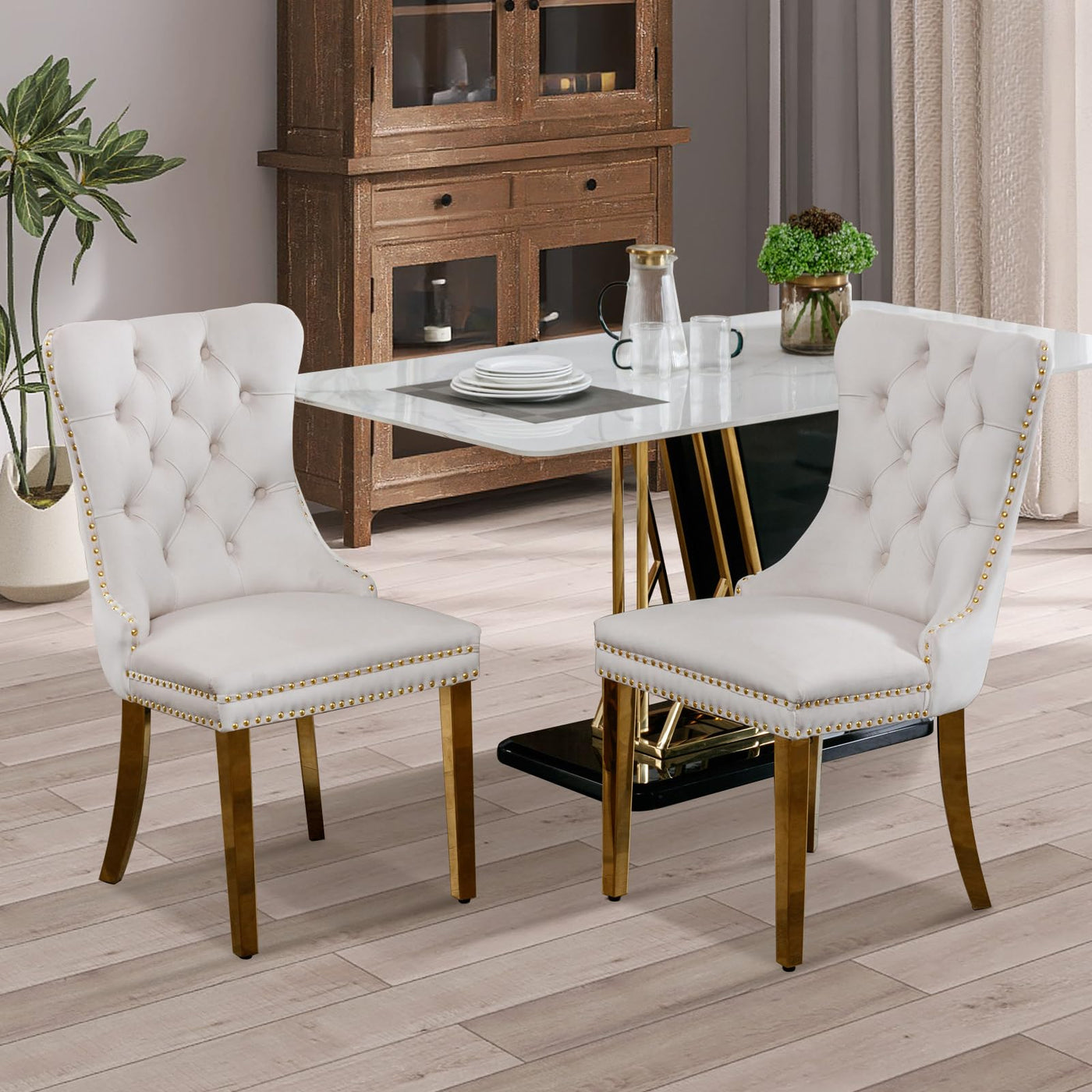 Soarflash Velvet Dining Chair Set Of 2, Upholstered Tufted Dining Room Chair With Nailhead Trim, Solid Gold Plated Leg For Kitch