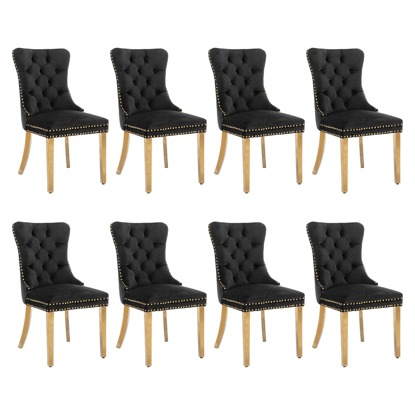 Soarflash Velvet Dining Chair Set Of 8, Upholstered Tufted Dining Room Chair With Nailhead Trim And Solid Gold Plated Leg For Ki