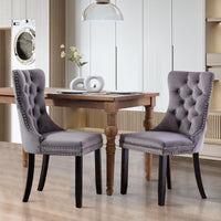 The Chair Is Covered With Velvet. The High Wing Backrest Is Ergonomically Designed To Relieve Back Fatigue. The Thick Seat Pads Have Highly Elastic Foam For Optimum Softness And Comfort. Simple And Stylish Design To Better Decorate Your Home, A Variety Of Color Options Can Match Almost Any Color Furniture. Advantage:1.Unique Button Tuftedwith A Breathable Linen-Look Upholstery And Button-Tufted Backrest, The Dining Chair Combines Comfort With A Classic Aesthetic.2.Strong And Sturdythe Base Is Made Of 4 High-Quality Rubber Wood Legs That Ensure Good Sturdiness And Durability. Note The Distinction Between The Front And Back Legs. We Put All The Wooden Legs Under The Woven Fabric To Save More Space.3.Comfortable Upholstered Seatselected Velvet Surface And Spring Thick Soft Foam Pads Provide Maximum Sitting Comfort.4.Elegant Nail Head Decorationunique Modern Stud Head Trim Surrounds The Edge Of The Seat For A Polished And Elegant Look.5.Specification:Weight Limit: 300 Lbsoverall Dimension: 19.7' X 24.4' X 37.5 '(W X D X H)Chair Weight(2Pcs): 45 Lbswhat'S In The Box:2 X Dining Chairs1 X Installation Manual1 X Installation Tooltip:Please Do Not Tighten The Screws Without Confirmation. The Shape Of The Legs Of The Table Is Different, Please Check The Front, Back, Left And Right.