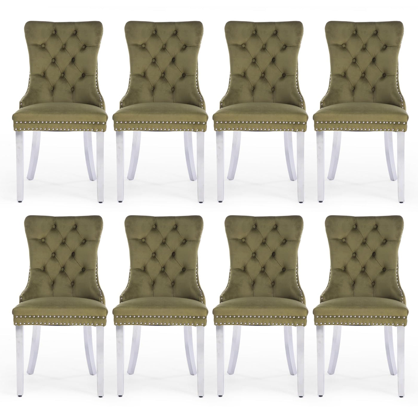 Soartalent Velvet Upholstered Dining Chairs Set Of 8, Modern Kitchen Side Chairs With Nailhead Trim And Silver Plated Leg, Metal