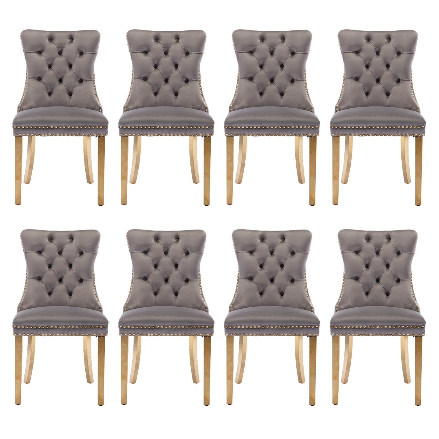 Soartalent Velvet Upholstered Dining Chairs Set Of 8, Modern Style Kitchen Side Chairs With Nailhead Trim And Gold Plated Leg, M