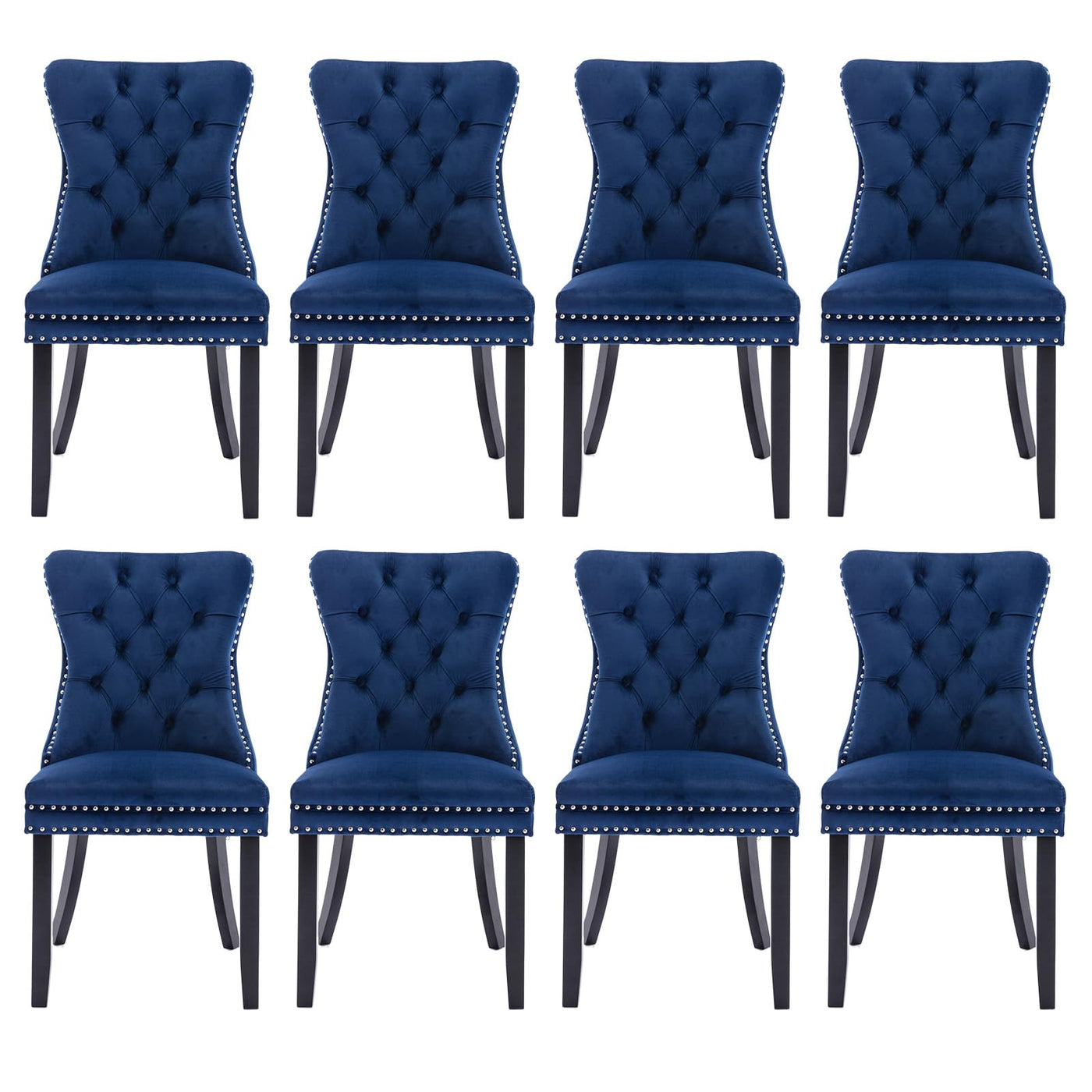 Soartalent Velvet Upholstered Dining Chairs Set Of 8, Modern Style Kitchen Side Chairs With Nailhead Trim And Wood Legs,Metal Pu