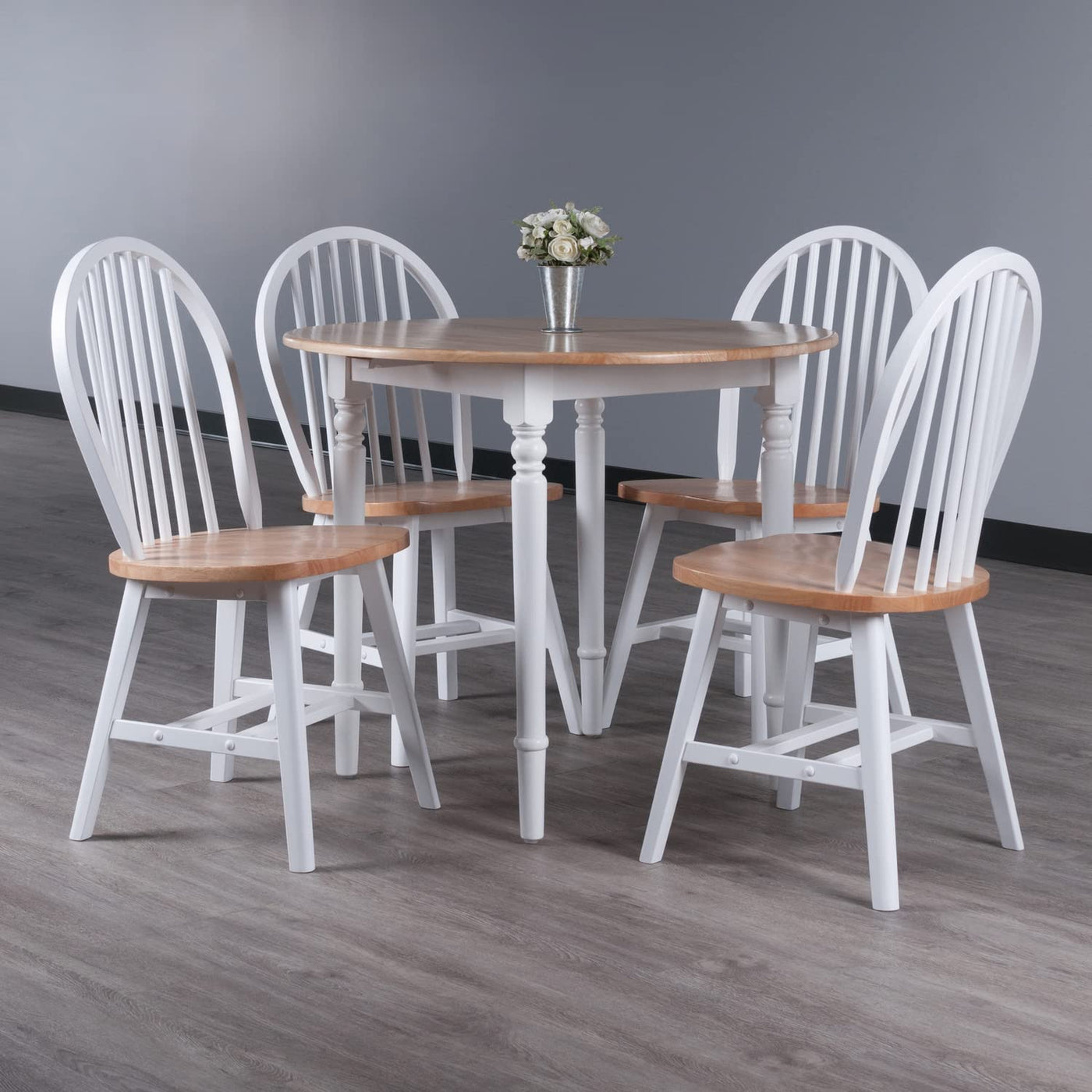 Sorella 5-Pc Drop Leaf Dining Table with Windsor Chairs - Natural and White