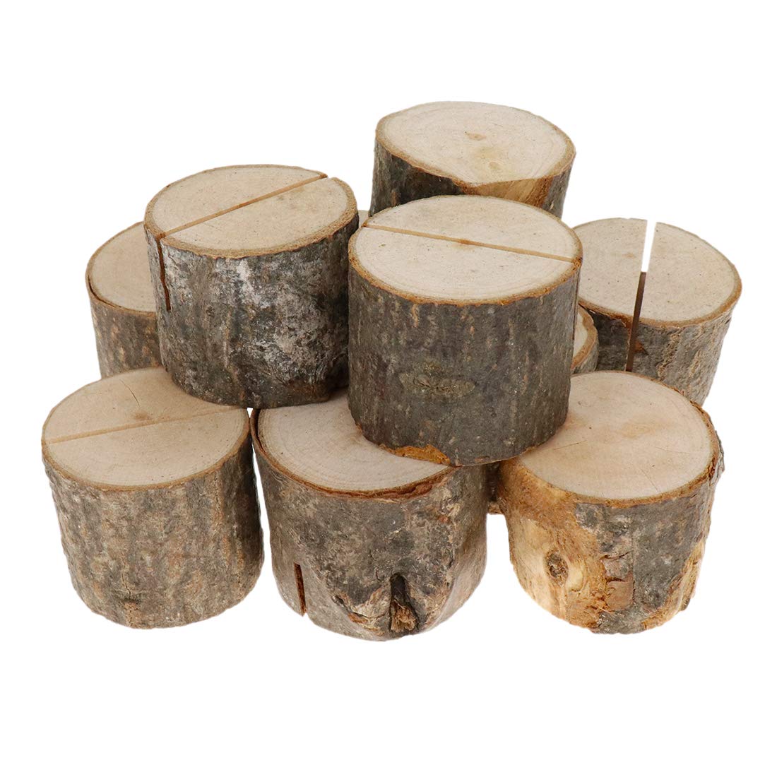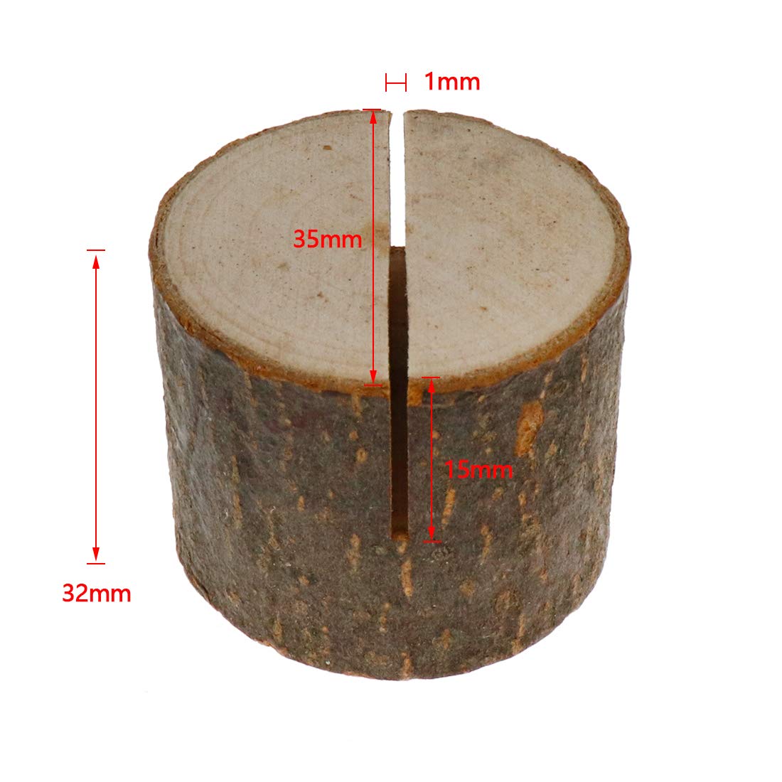 Product Description 1.Made Of Real Wood Piles Hard And Durable Can Be Used Repeatedly. 2.All Place Card Holder Made Of Natural Wood Are Different And Each Bark Has Its Own Unique Wood Grain And Appearance Which Gives Them Individuality And Uniqueness. 3.The Simple Natural Wood Color Is Low-Key And Not Out Of Style Suitable For Various Atmospheres And Places. 4.Suitable For Displaying Photos Postcards Business Cards Labels Mini Menus Etc. Product Specifications: Material:.Wood. Weight:42G/1.48 Oz. Total Size:35Mm*32Mm/1.38'*1.26'(Dia*L). Package Content:10Pcs Wooden Place Card Holders. Tips: 1.Please Keep It In A Cool Place Avoid Direct Sunlight. 2. The Product Is Made Of Natural Wood And May Peel Off Partly. This Is Normal.
