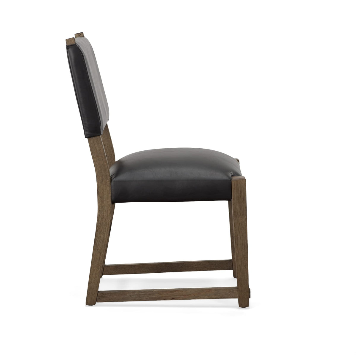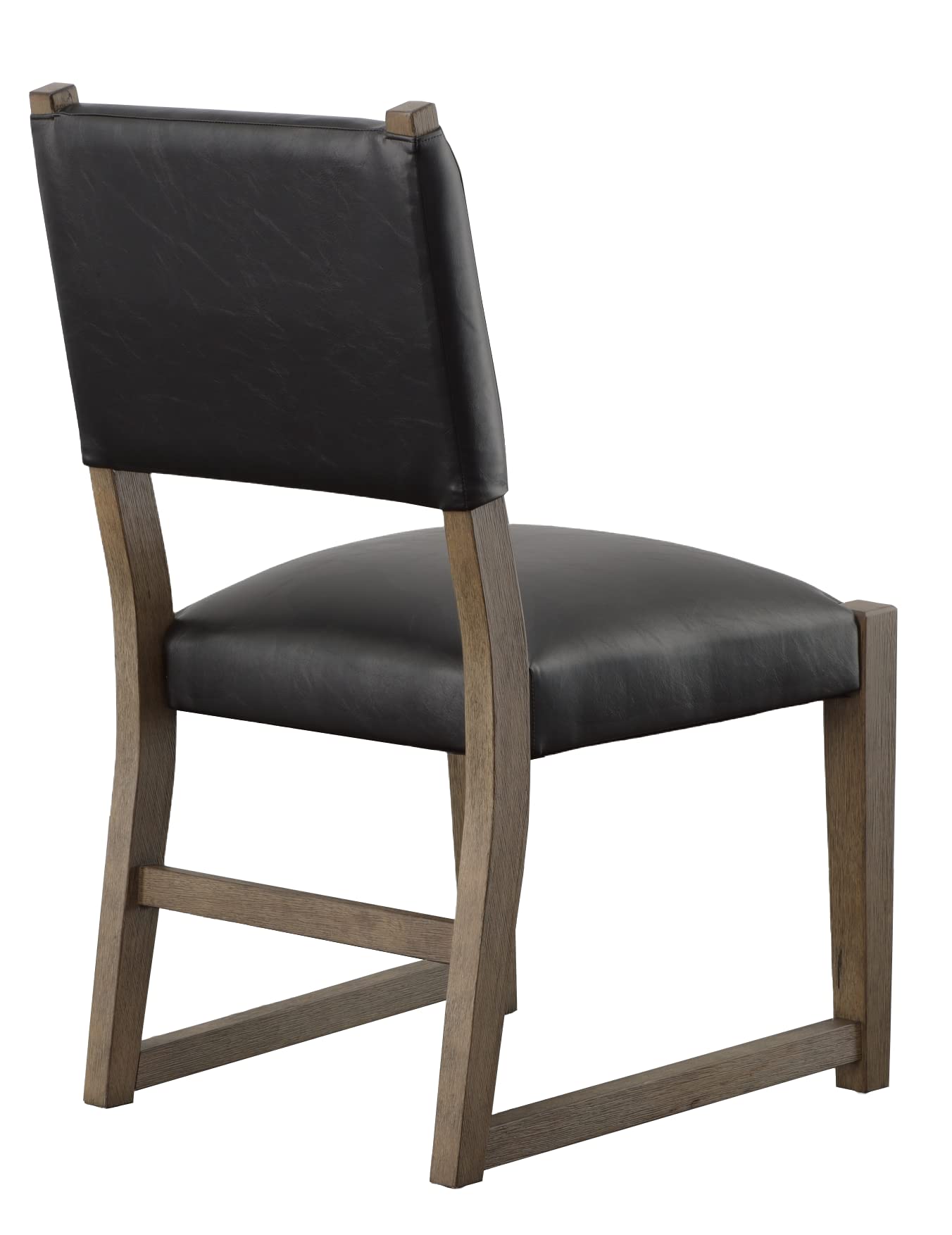 Rustic Styling And Soft Seating In A Chair Comfortable In A Dining, Guest Or Office Setting. The Atmore Side Chair Features A Beautiful Easy-Care Black Leatherette Seat And Back Accented With A Hand-Stained Deep Driftwood Finished Solid Wood Frame. A Semi-Sled Base And Wood Score Distressing Add Elements Of Industrial Design And Primitive Chic To Fit Casually Sophisticated Interiors.