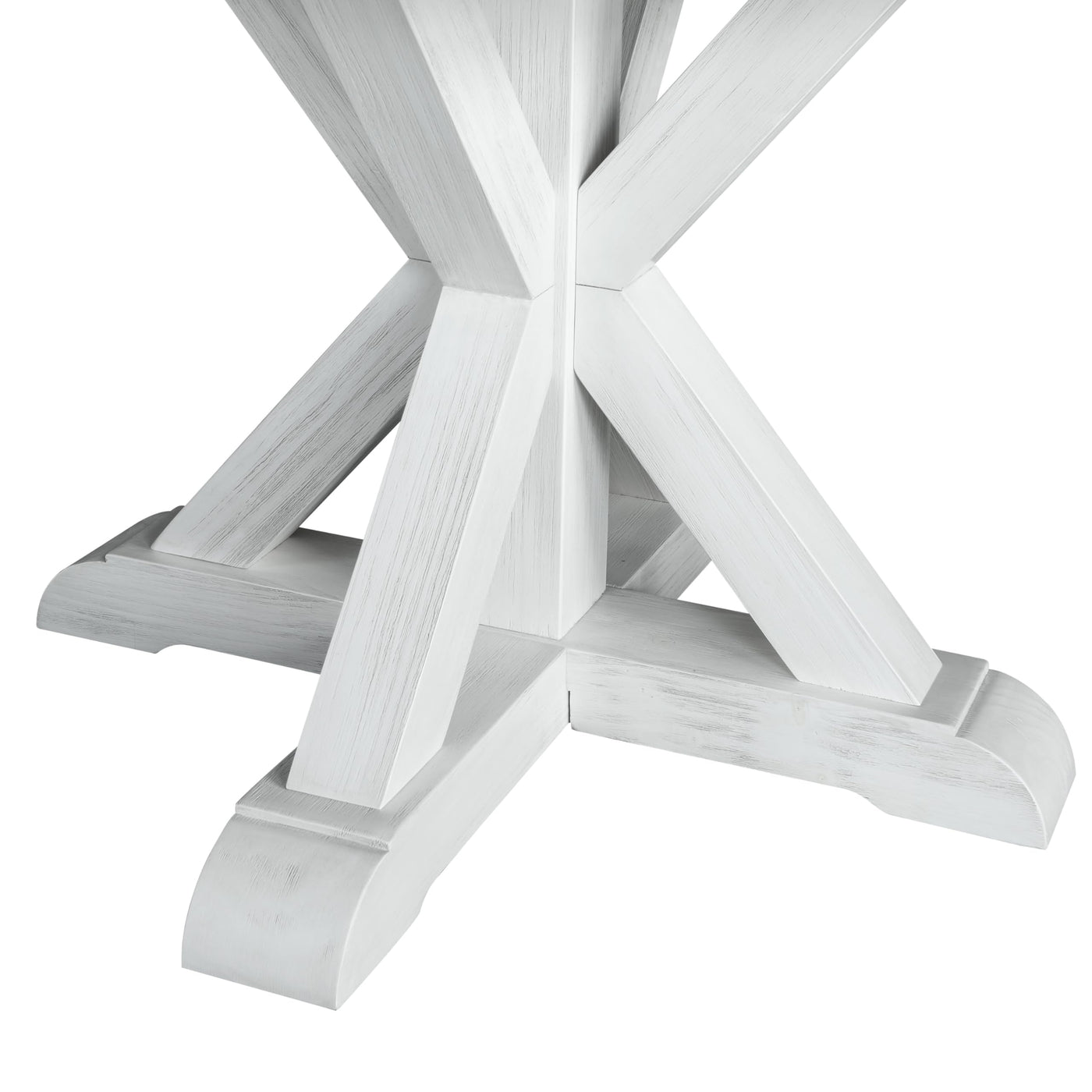 Constructed of gray marble veneered top with engineered woods and a base from pine solids, veneers and engineered woods | Gray marble top with white veining blends beautifully with a white timber-beam trestle base | Neutral white and gray works with virtually any decor | Seats up to six