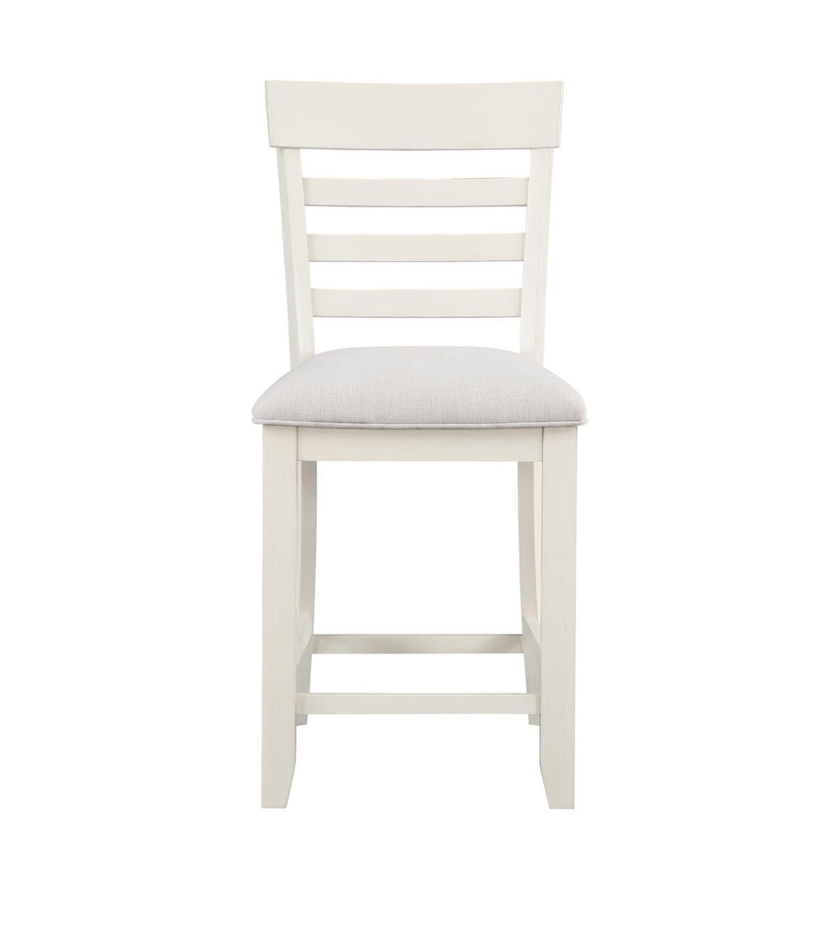 An Upholstered Counter Chair That Sports A Crisp White Finish And Cream-Colored Fabric Seat For A Fresh, Comfortable Addition To Any Kitchen Or Dining Area. The Horizontal Slatback Design Features A Shaped Top Rail For A Relaxed Transitional Appeal For Modern, Farmhouse Or Coastal Environments. Stretchers Add Structural Support And A Place To Rest Your Feet When Seated At The Hyland Counter Table Or A Counter Bar.