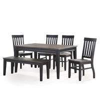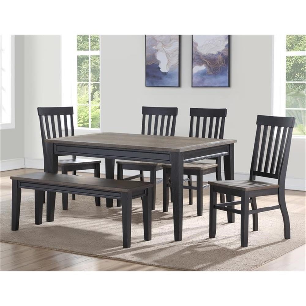 The Raven 6Pc Dining Set Features Farmhouse Styling With An Updated Look Combining Clean Lines With A Two-Tone Ebony And Driftwood Finish. The Raven Dining Table Exhibits Cottage Style With It'S Plank Effect Top With Breadbox Veneer Pattern, Picture Frame Table Apron And Sturdy Tapered Legs. The Raven Side Chairs With Schoolhouse Styling Feature A Scoop Seat For Comfort And Stretchers With A Tapered Leg For Strength And Support. The Raven Bench Features A Picture Frame Table Apron And Sturdy Tapered Legs. Your Purchase Includes One Dining Table, Four Dining Side Chairs And One Bench.