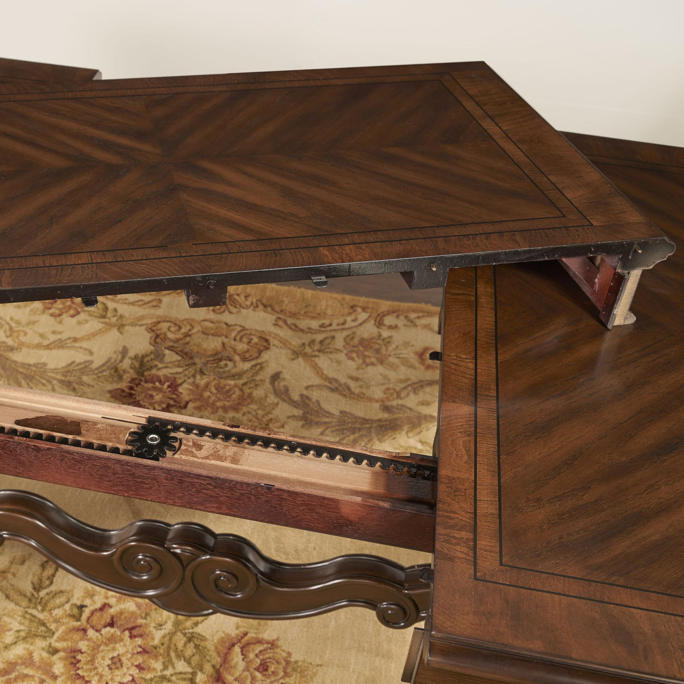 Royale Evokes Memories Of The Detail And Craftsmanship Of Yesterday'S Antiques In A Dining Package Updated For Today. The Royale Dining Table Finished In A Warm, Brown Pecan-Color Over Oak And Ash Burl Veneers Combines With A Shaped Top To Create A Truly Grand Presentation. The Grand Scale Table Features Magnificent Detail Work On The Beautifully Carved Pedestal Base, A Gracefully Shaped Apron And A Table Top That Extends To 96” When The Leaf Is Added. You Are Sure To Impress Your Family And Friends With The Royale Dining Collection.