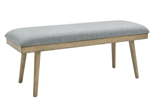Steve Silver Furniture Vida Gray Polyester Dining Bench, Mid-Century Modern Scandinavian Design, Tubular Canted Solid Wood Legs, 49' L X 17' W X 20' H, Blonde