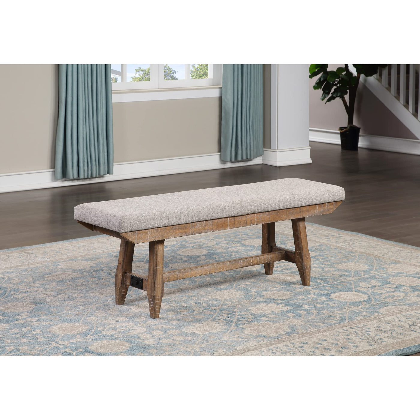 Steve Silver Rustic Ranch Driftwood Finish, Dining Room Bench, Upholstered Seat, Stretchers, Distressed Heirloom Feel, 60 Inches Length Bench, 60' L X 16' W X 20' H, Brown/Grey